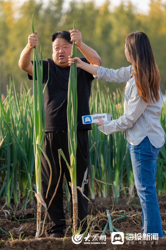 “章丘大葱高大白脆甜,个头都在1.8米以上。”谢良峰在田边走着,随手捡起了一棵刚收获的大葱,“我身高一米八五,这颗葱比我还高一块,估计能达到两米。”