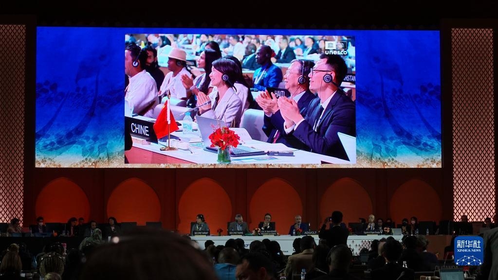 11月29日,在摩洛哥拉巴特的联合国教科文组织保护非物质文化遗产政府间委员会第17届常会会议现场,我国申报的“中国传统制茶技艺及其相关习俗”项目接受评审。新华社记者 许苏培 摄