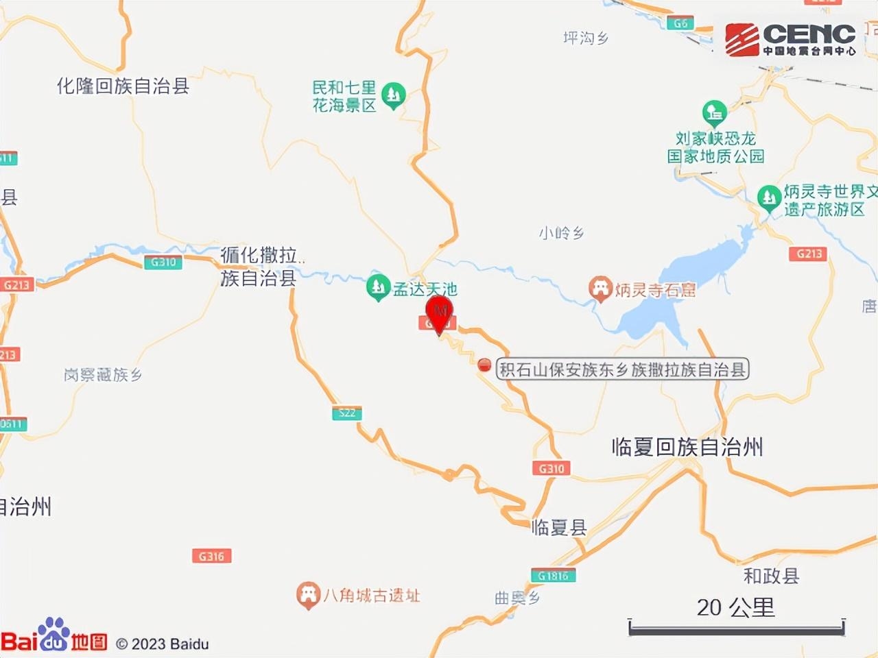 历史地震:根据中国地震台网速报目录,震中周边200公里内近5年来发生3级以上地震共35次,最大地震是2023年12月18日在甘肃临夏州积石山县发生的6.2级地震(距离本次震中8公里)。