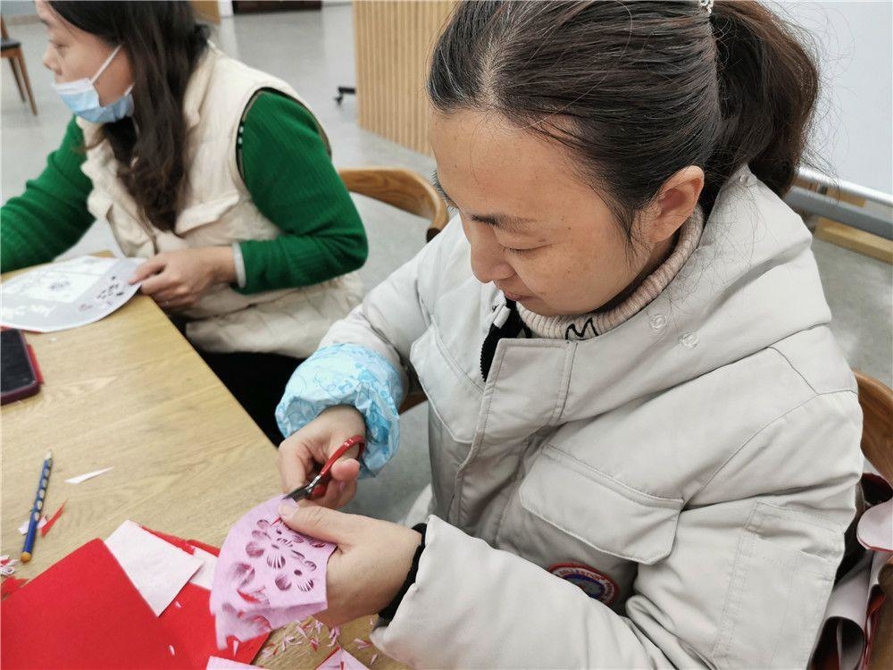 2023年12月22日下午,室外寒风凛冽,在温暖的淄博市图书馆四楼尼山书院里,淄博市剪纸非遗传承人关丽为热心市民带来了一堂传统文化公益剪纸课。这些围坐在一起认真听讲的市民,在关丽看来,有许多“老”面孔,也有很多新朋友。
