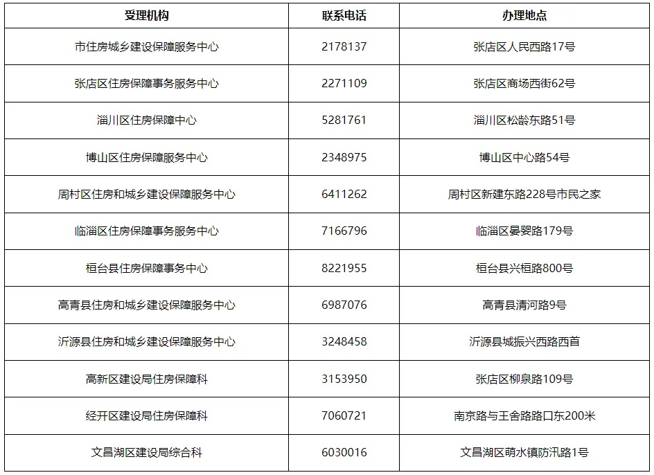 淄博市市区公租房业务电话及办理地点