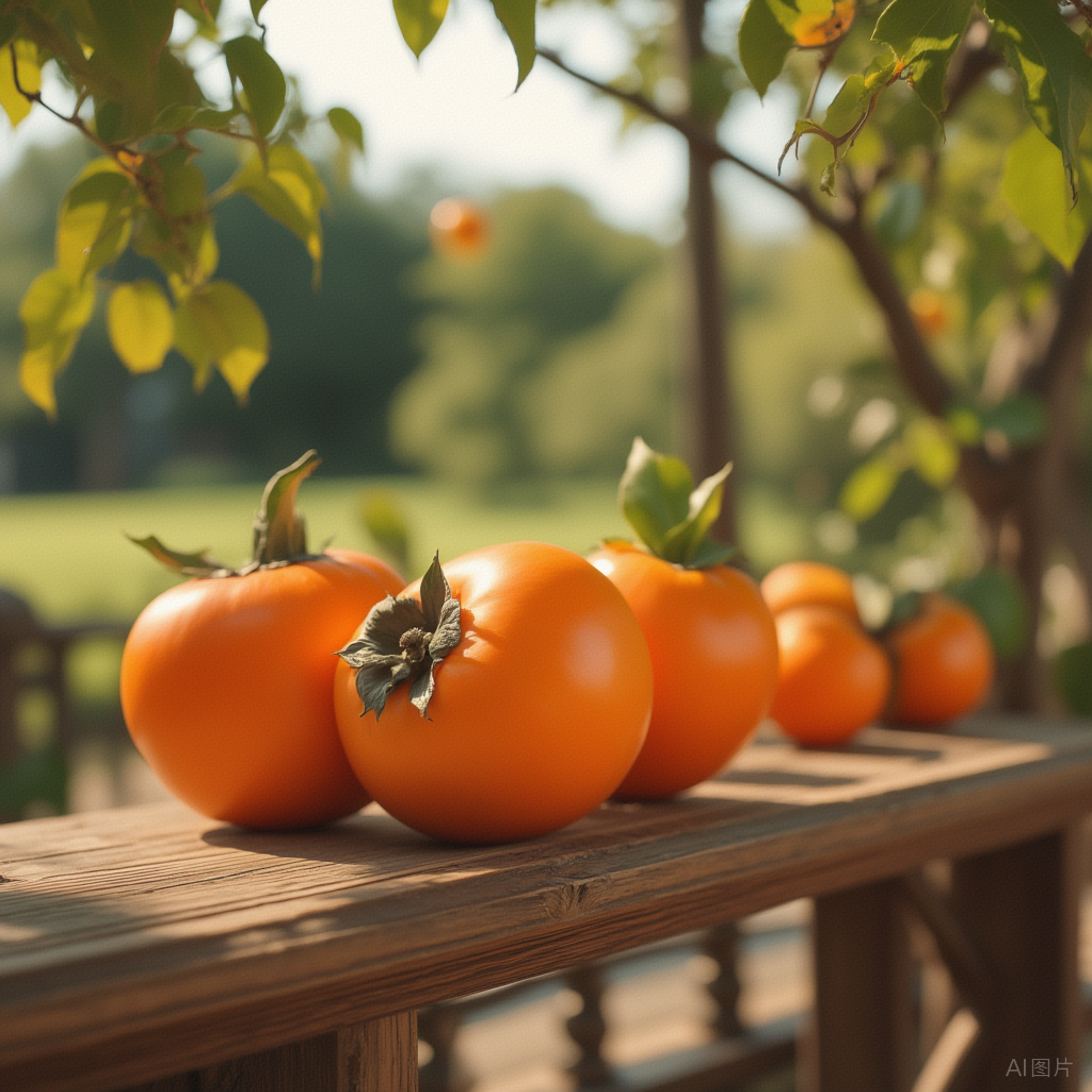 霜降前后是柿子的最佳食用期。成熟的柿子挂满树丫,如同一盏盏精致的小灯笼,此时的柿子皮薄、肉多、味美,轻咬一口,芳香清甜,而且“柿”与“事”谐音,也寓意事事如意、吉祥美满。
