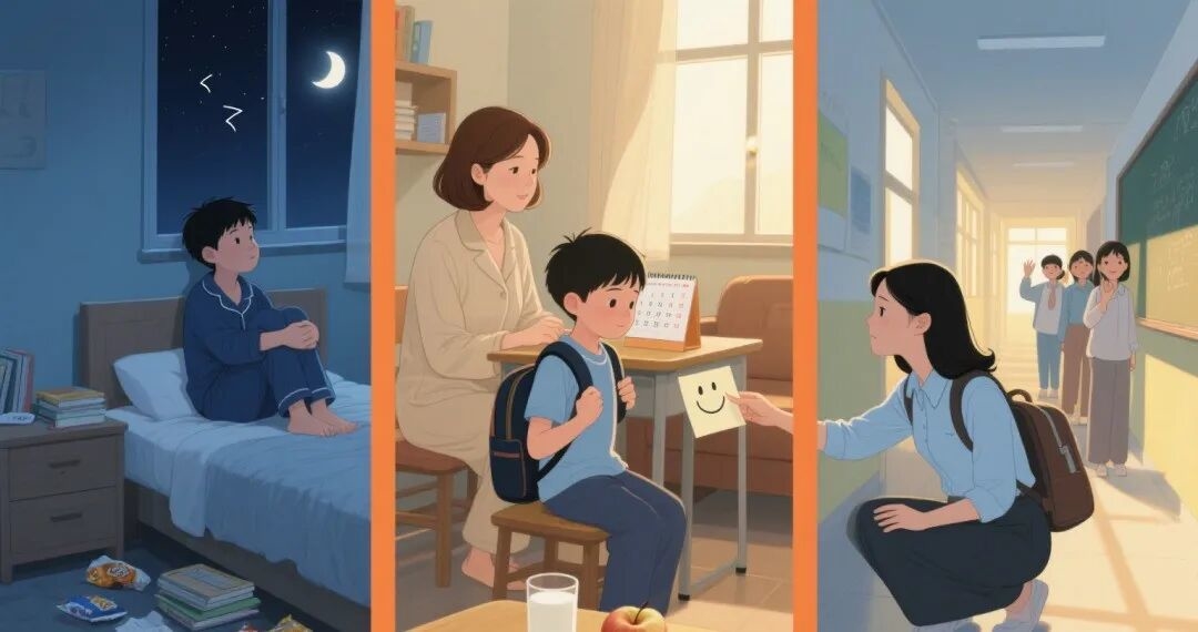 若发现学生出现持续1周以上的失眠、情绪低落、拒绝上学等情况,及时联系家长,建议寻求专业心理医师帮助。