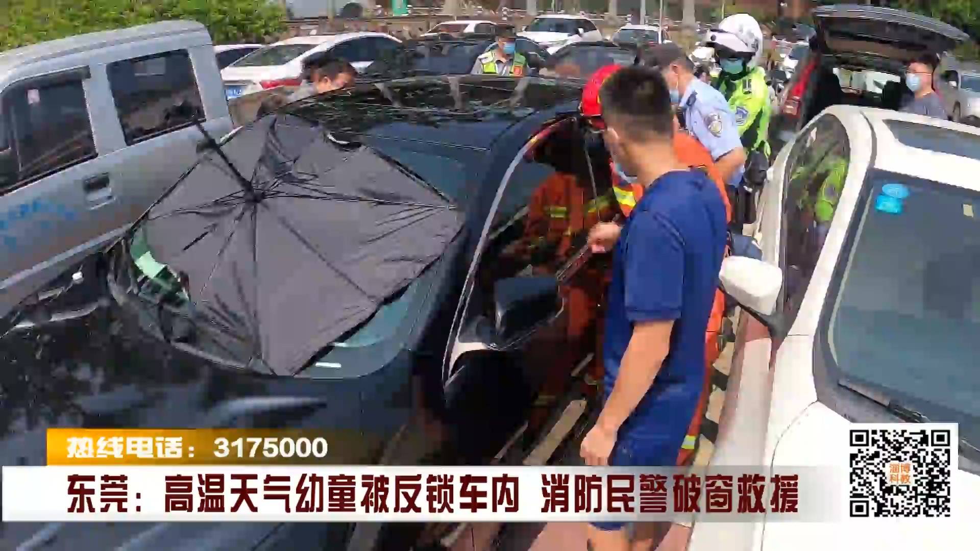东莞:高温天气幼童被反锁车内 消防民警破窗救援