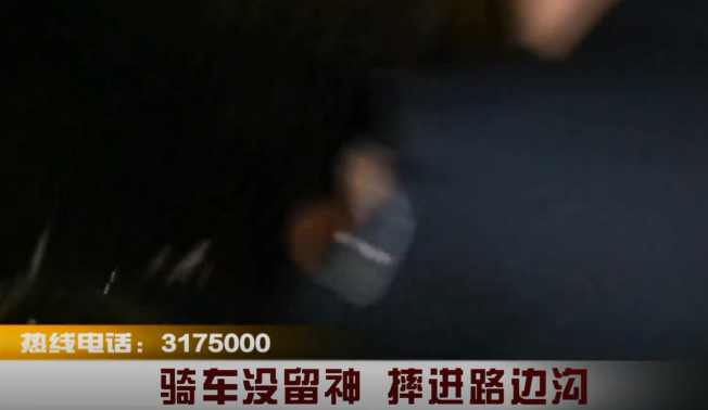 骑车没留神 摔进路边沟