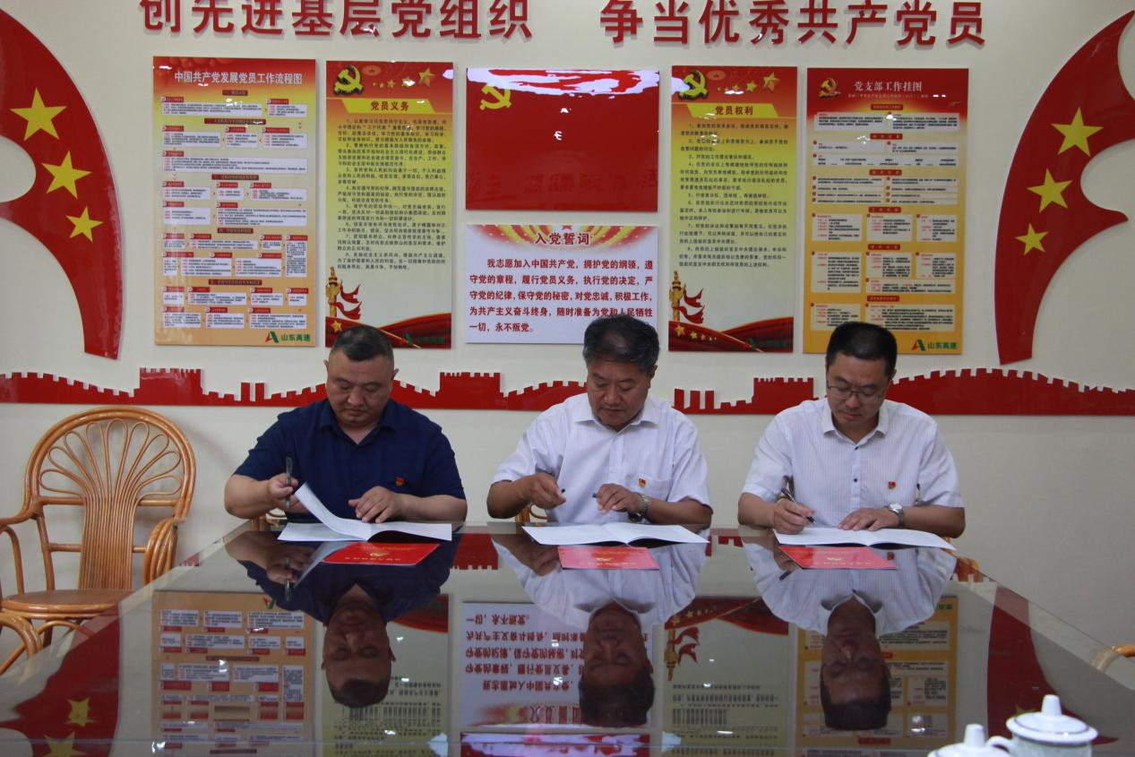 随后,共建三方在临临高速四标党员活动室开展交流座谈,就党建工作的思路、特色做法,围绕加强党建工作融合等进行交流探讨并举行签约仪式,共同签订《党建共建协议书》。