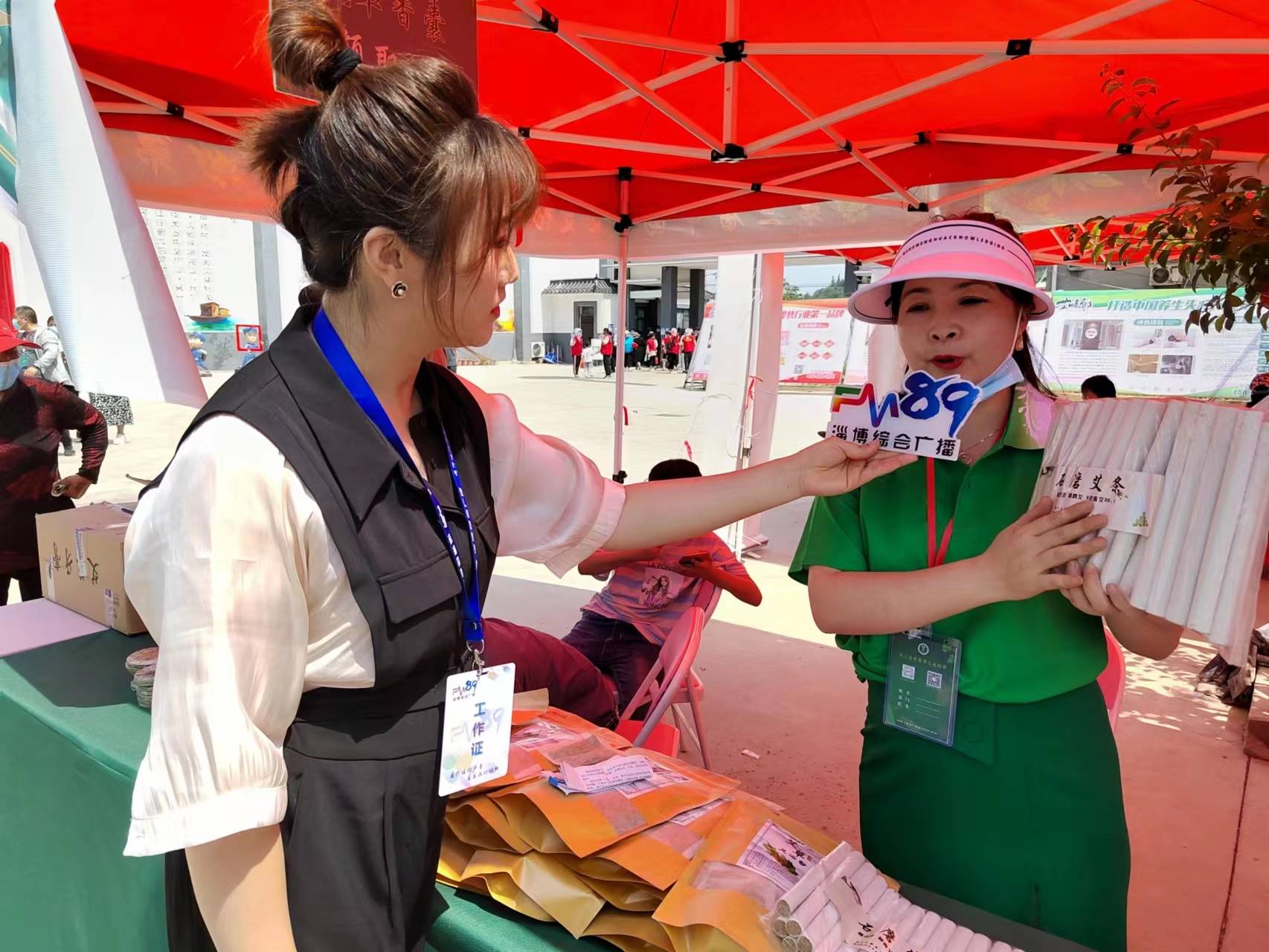 5月29日,由市妇联、市委网信办、市商务局、市广播电视台主办的淄博市“巾帼好品 云上齐销”公益展播暨第三届中国齐艾文化节开幕式在淄川区西河镇举行。公益展播通过线上直播线下展台相结合的模式,在淄博综合广播音频、视频多平台助阵下对 “巾帼好品”,进行宣传推介。