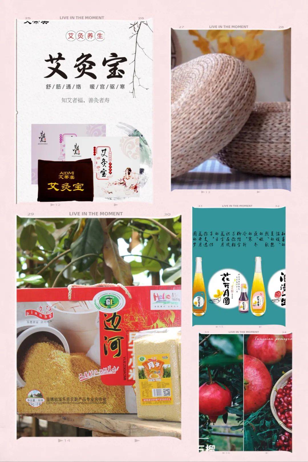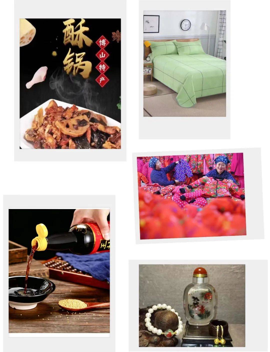 ●白沙枇杷(山东归园田居农业科技开发有限公司) ●益母草医护级暖宫贴(山东益母中药科技有限公司) ●川鹰玫瑰醋(山东川鹰食品有限责任公司) ●黛青山富硒软籽石榴(淄博锦川河富硒农业发展有限公司) ●西河煎饼(淄博市淄川区农兴生态农业专业合作社联合社) ●风味香椿(淄博远方有机食品有限公司) ●齐艾艾草制品(山东金尚健康科技有限公司) ●酸枣芽(山东良觅生态农业有限公司) ●七河鲜香菇(山东七河生物股份有限公司) ●维生素C咀嚼片(鲁维制药集团有限公司) ●金箔山底茶具套装(淄博迅昌玻璃制品有限公司) ●鲁派内画文创产品(博山内画张艺术馆) ●中国兰灯工琉璃(博山区石榴王琉璃工作室) ●博花酥锅(博山许氏食品厂) ●前辛村富硒藜麦米(淄博前辛祥泰农作物种植专业合作社) ●农多多花馍(淄博农多多农产品专业合作社) ●王村醋(山东华王酿造有限公司) ●英玉纯棉浴袍(淄博英玉服装有限公司) ●边河小米(淄博乐恩农业科技发展有限公司) ●巧媳妇龙缸酱油(山东巧媳妇食品集团有限公司) ●农本口感西红柿(临淄区齐陵农本家庭农场) ●丁氏酱牛肉(淄博鼎辉清真食品有限公司) ●苇编花篮(山东合峰文化产业发展有限公司) ●竹纤维服饰(山东一裳网络科技有限公司) ●龙图竹草编织家居收纳产品(山东龙图家居股份有限公司) ●七巧坊老粗布(淄博七巧坊粗布家纺有限公司) ●布艺边手工棉袄(沂源县布艺边加工坊) ●彩瑞千禧缘绣花鞋垫(沂源县彩瑞刺绣制品有限公司) ●奶酪冻干草莓(尊海食品有限公司) ●山珍园脱脂猪蹄(沂源县山珍园农业发展有限公司)