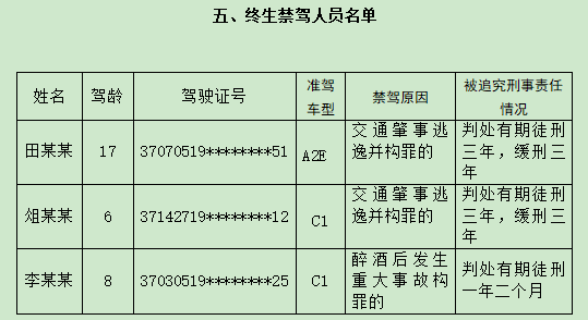 3名终生禁驾人员,田某某、俎某某因交通肇事逃逸并构罪被终生禁驾,李某某因醉酒后发生重大事故构罪被终生禁驾。(白继农 姜倩)