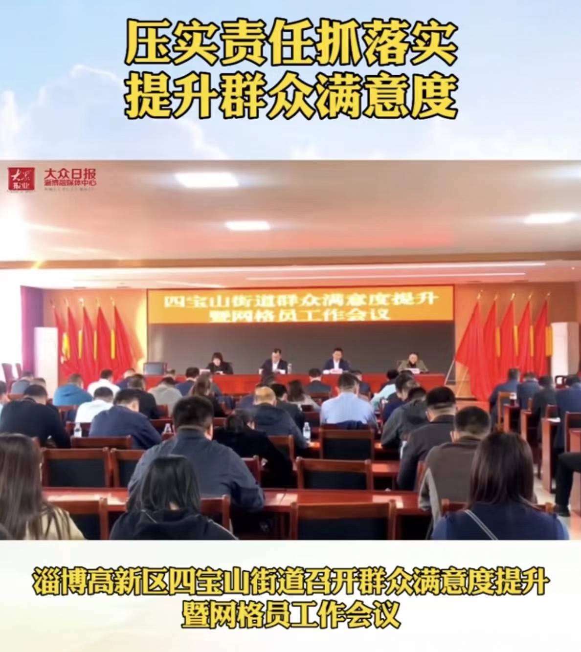 近日,淄博高新区四宝山街道召开群众满意度提升暨网格员工作会议,对满意度提升工作进行再动员、再部署、再细化。会议邀请高新区教体中心、群工部综治中心相关领导开展业务培训。接下来,四宝山街道将进一步压紧压实责任,迅速部署推动,从严从实从细抓好工作落实,推动街道各项工作实现新提升新突破,以扎实成效推动群众满意度实现大的提升。(康嵩 陆晓茜 于啸晨 刘昕)