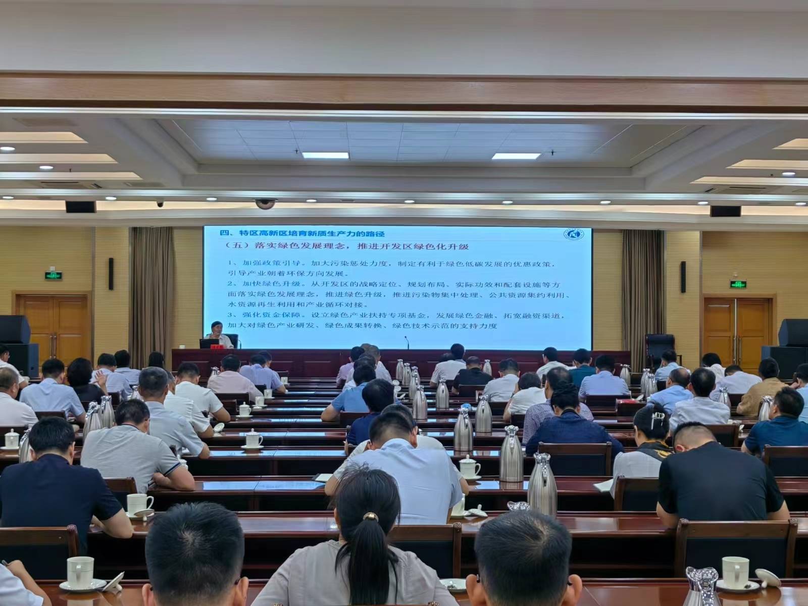 近日,淄博高新区举办2024年第三期“高新大讲堂”专题讲座,高新区领导朱贻胜、刘大力、李凯,各部门单位领导班子成员、国有企业负责人及科技发展中心全体机关干部参加讲座。本次培训班邀请中国外商投资企业协会副会长兼开发区工作委员会常务副会长张召堂围绕“新质生产力与高新区高质量发展”作专题讲座。报告从新质生产力的内涵、发展方向和国内外发展现状展开,围绕统筹传统和新兴产业、统筹协调开放、增强创新驱动赋能、创新产业发展模式、落实绿色发展理念、推进产业融合和数实融合等方面,结合实践案例分析,对高新区培育发展新质生产力的路径进行了科学系统的阐述,对广大领导干部准确把握领会发展新质生产力具有很强的针对性和指导性。