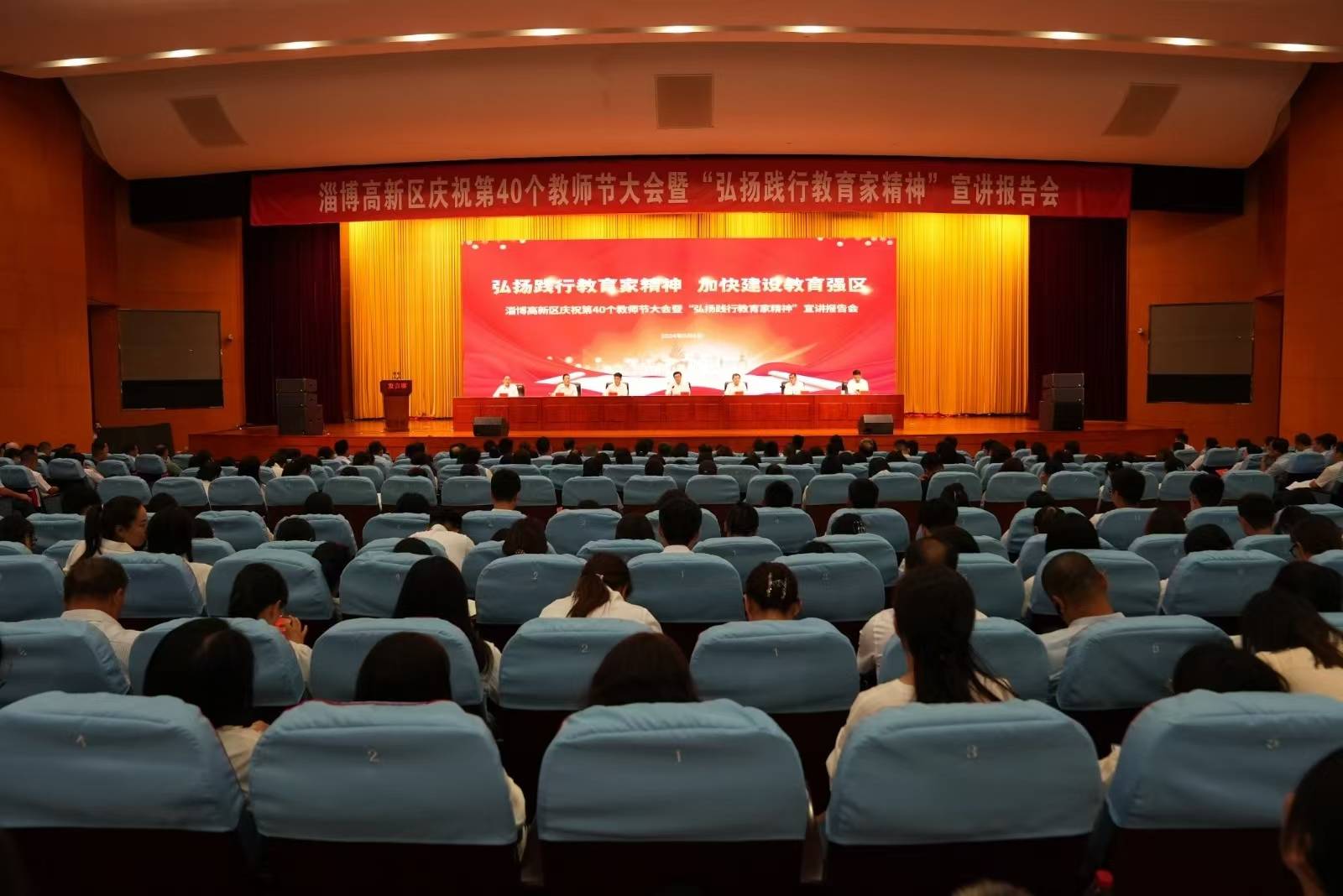 近日,淄博高新区召开庆祝第40个教师节大会暨“弘扬践行教育家精神”宣讲报告会,深入学习贯彻党的二十届三中全会关于教育的重要论述,通报表扬全区教育工作中涌现出的典型代表,激励广大教育工作者增强政治责任感和历史使命感,全力推动教育工作再上新台阶。高新区工委书记、管委会主任王晓东出席会议并讲话。高新区领导耿庆玮、郭成、吕厥强、付萍、孙胜利、耿庆文出席会议。会上,5名优秀教师代表上台宣讲,展现出广大教师坚守岗位、敬业奉献的精神和扎根教育、埋头苦干的良好精神风貌。会议宣读了2023-2024学年度教育系统荣誉册,并为获得区级荣誉的教师代表颁奖。