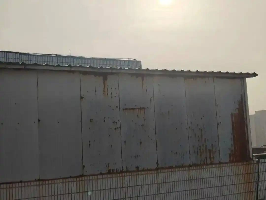存在的主要隐患或消防安全违法行为:门卫室屋顶违规使用泡沫夹芯彩钢板搭建。
