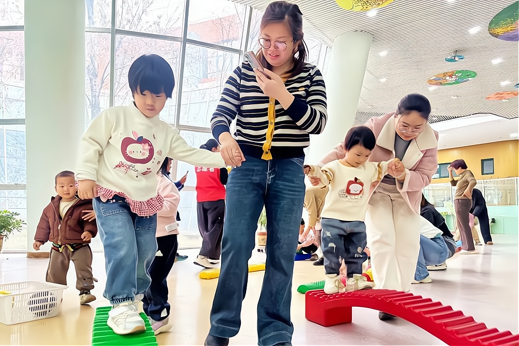 近日,淄博高新区组织开展“康康慧慧”公益早教活动,以“深化文明共建,共育幼儿未来”为主题,面向辖区亲子家庭提供专业、优质、免费的早教服务,扎实推进科学育儿理念普及工作。活动设置趣味亲子互动环节,通过轻松愉悦的互动,有效提升了幼儿肢体协调能力,进一步密切了亲子关系。此外,在活动过程中,专业教师为家长提供一对一指导,解答育儿疑问,分享科学育儿经验,切实回应家长在育儿实践中的重点难点问题。