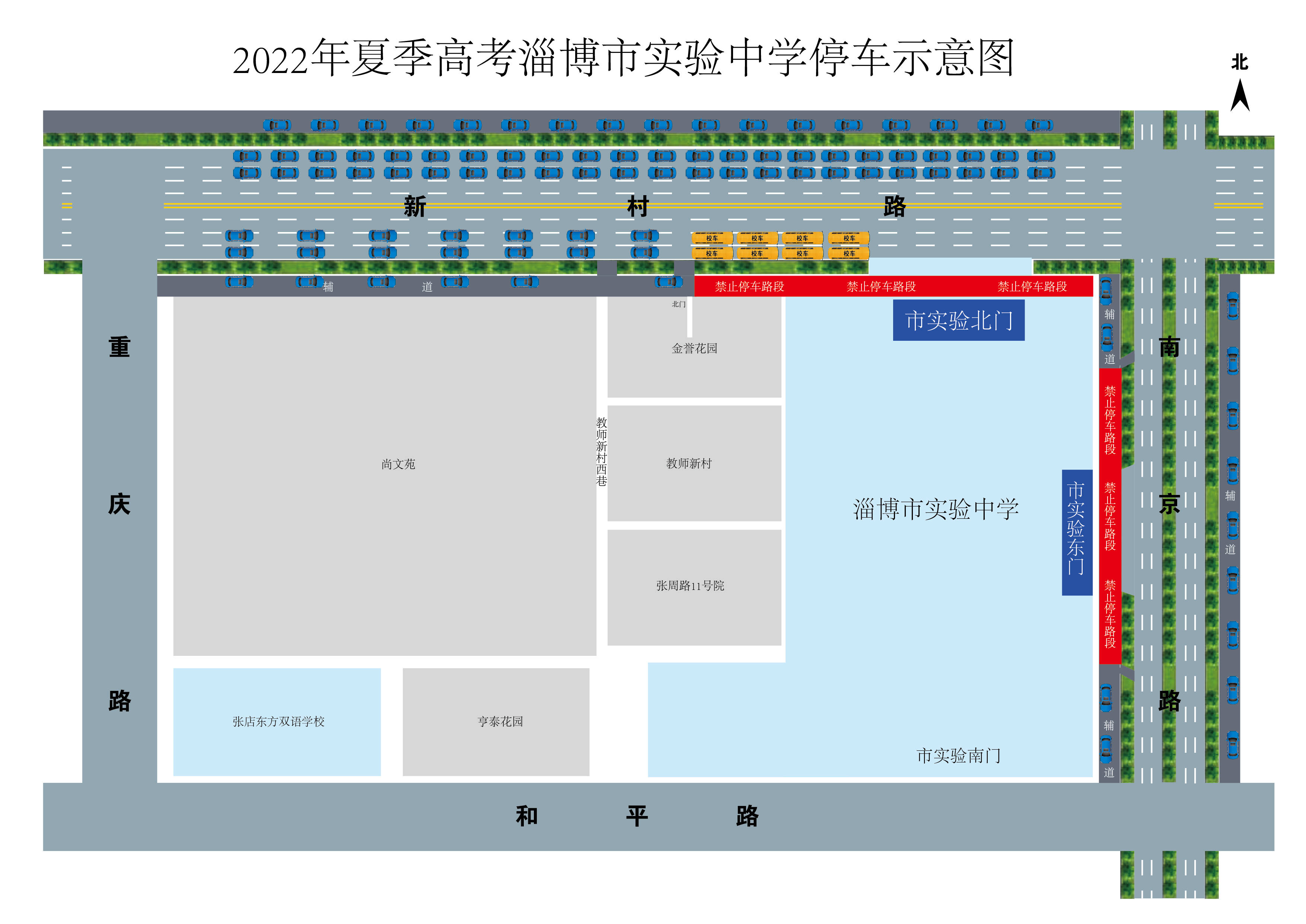 1.新村路市实验中学北门路南侧非机动车道、人行道(南京路至金誉花园段),南京路市实验中学东门路西侧非机动车道、人行道(东门口南北两侧辅道入口段)禁止车辆驶入、停放,其余新村路两侧非机动车道、最外侧2条机动车道,南京路两侧非机动车道作为接送考生车辆停放区,允许接送考生车辆顺向靠边停放。
