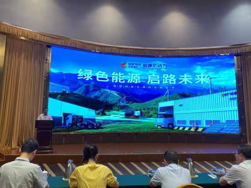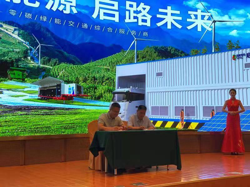 推介会上,国家电投启源芯动力与淄博双旭运输有限公司、福田欧曼签署战略合作协议,共同推动电动渣土车及换电站的推广应用。