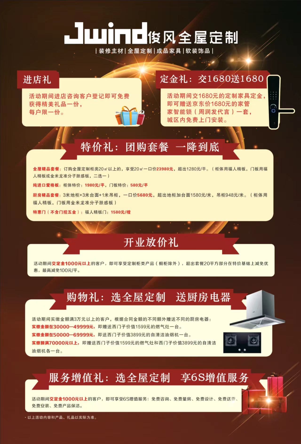 定位为轻、高定,主营福人精板、金米龙准分子肤感板、进口奥地利爱格板和意大利可丽芙板。定制产品的核心生产工艺封边为德国豪迈封边机加PUR工艺,是国内目前一线品牌常用工艺,俊风全屋定制工艺要求不断精益求精,为了满足客户的个性化高端需求,上半年又新上了激光封边机。