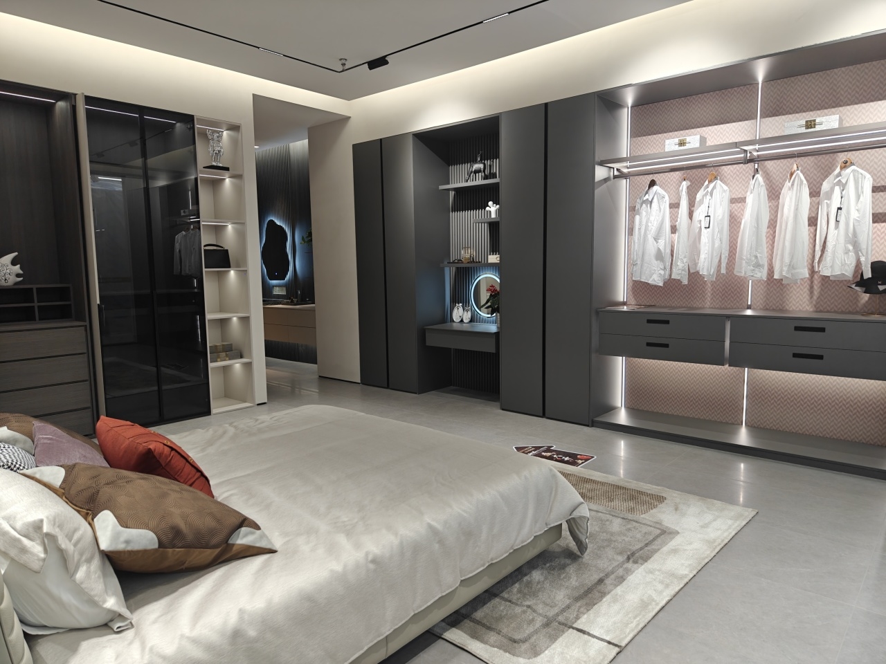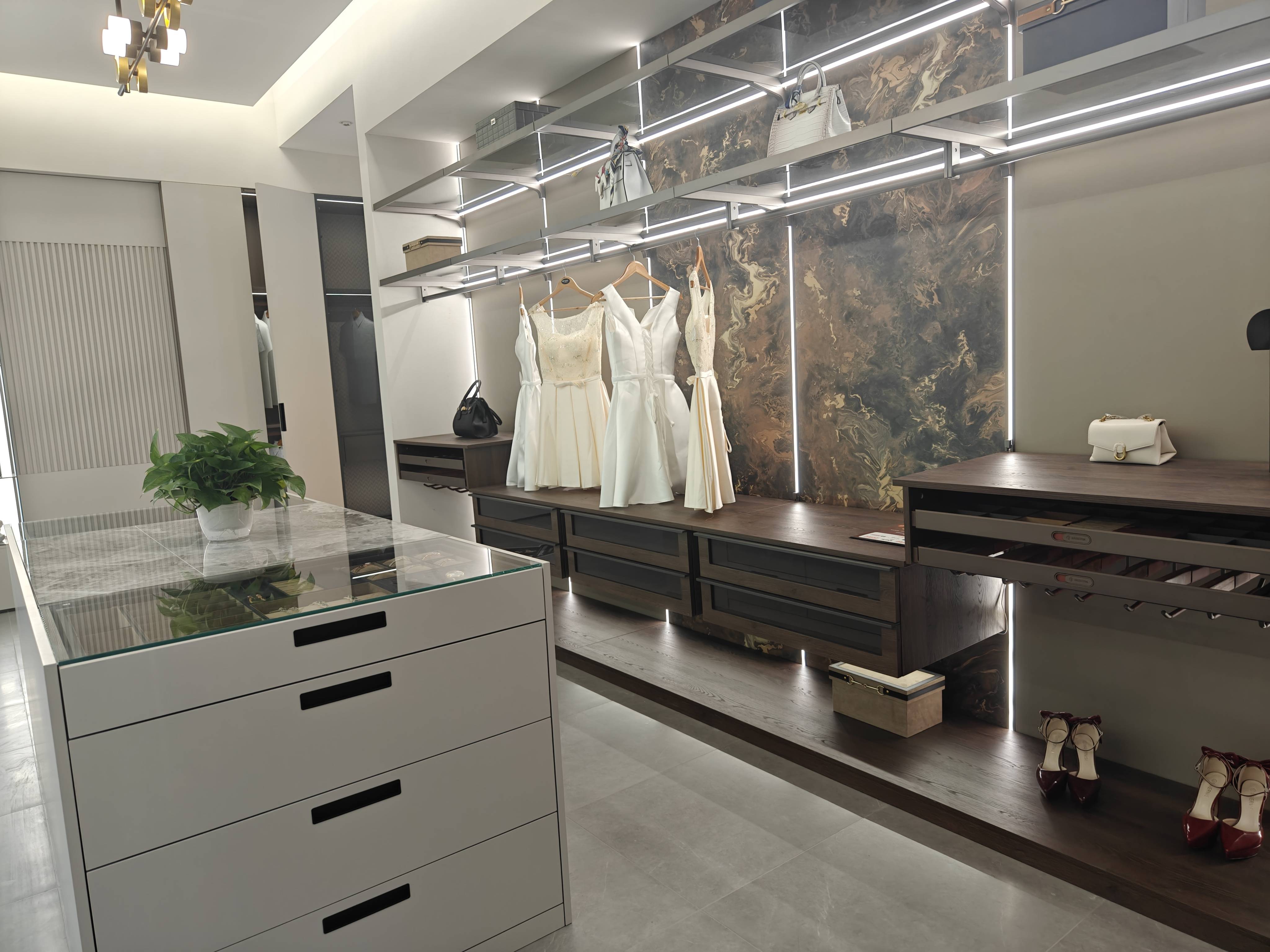 聘请了广东星程设计公司进行重新设计,深刻挖掘现代人的审美需求与生活方式,保留最核心的设计表达,运用玻璃、肌理漆、灯光等材质元素,营造出一种现代+轻奢的居家氛围,给居住者带来极简、雅致的居住体验。