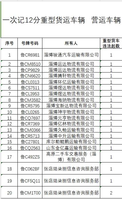 一、突出交通违法车辆,重点对全市3次以上交通违法未处理车辆5531辆,其中,重型货运车2637辆、营运车2876辆、危化品运输车15辆、旅游客运车3辆。一次记12分的重点车辆21辆,其中,重型货运车、营运车20辆,旅游客运车、营运车1辆。