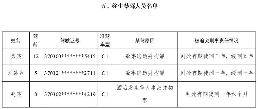 五、3名终生禁驾人员。