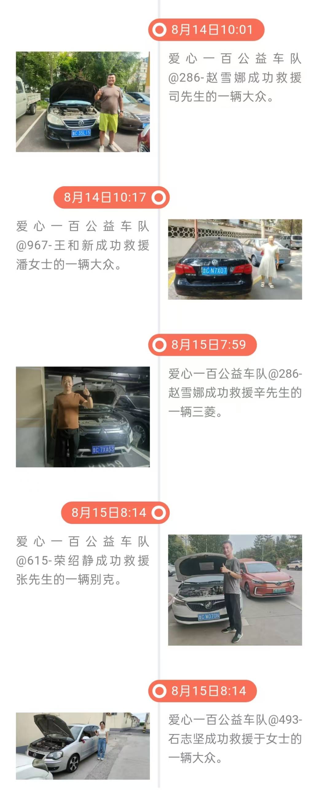雷锋精神在淄博| 爱心一百公益车队8月15日救援日志