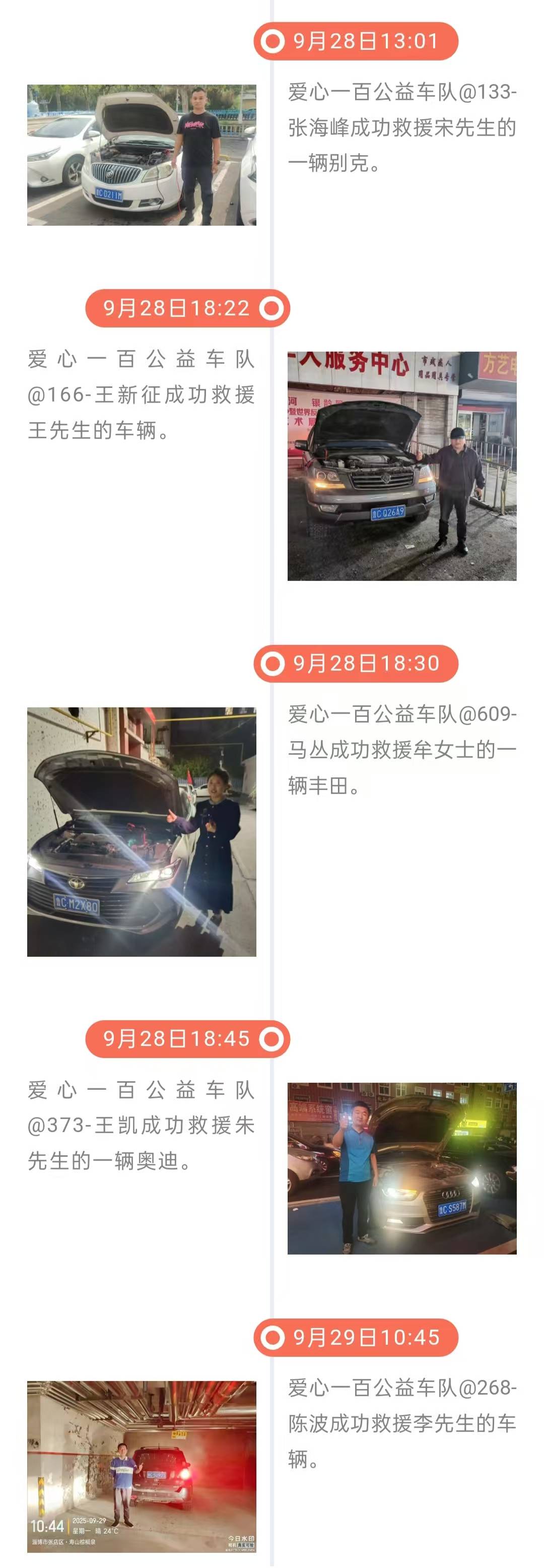 雷锋精神在淄博| 爱心一百公益车队9月29日救援日志