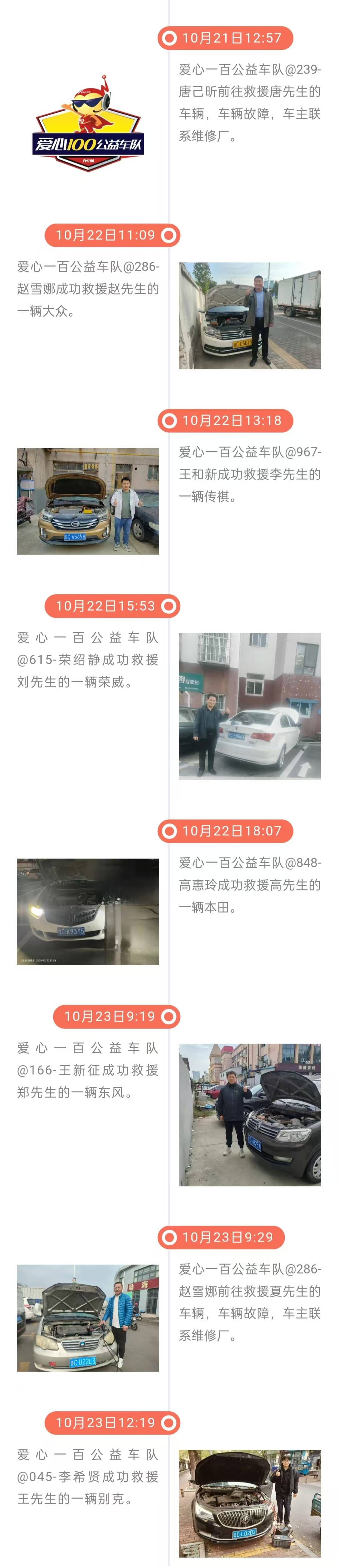 雷锋精神在淄博| 爱心一百公益车队10月23日救援日志