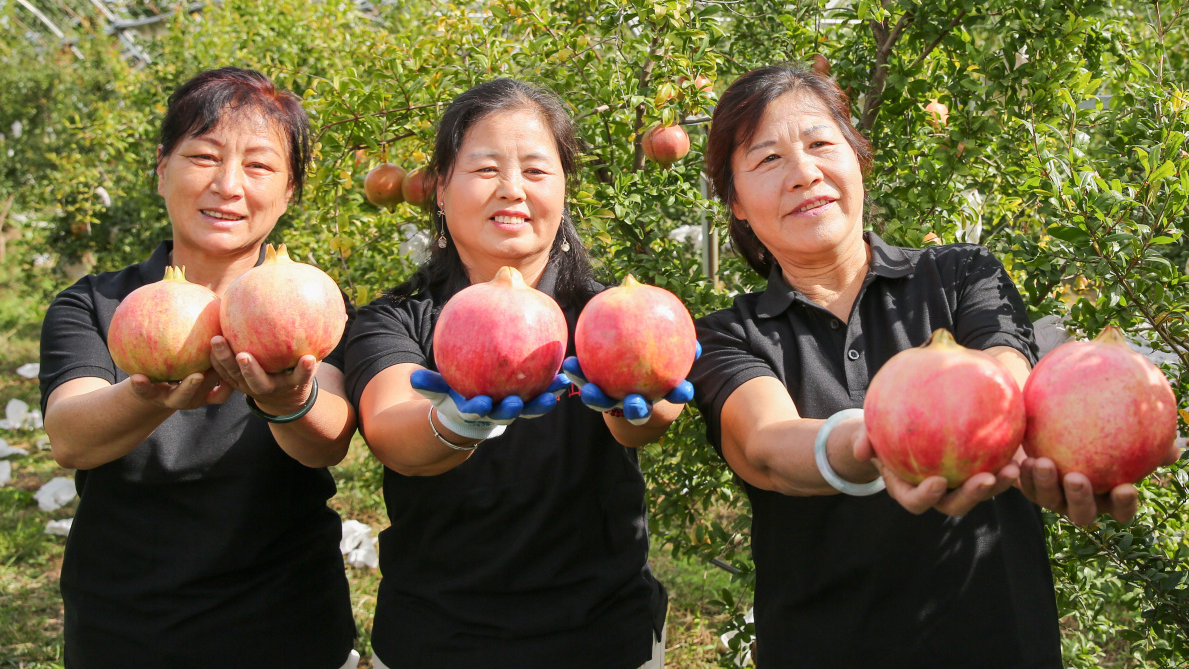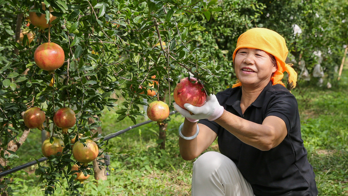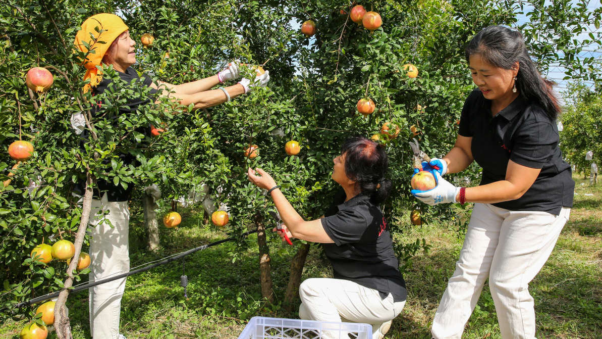 金秋石榴红 果农采摘忙