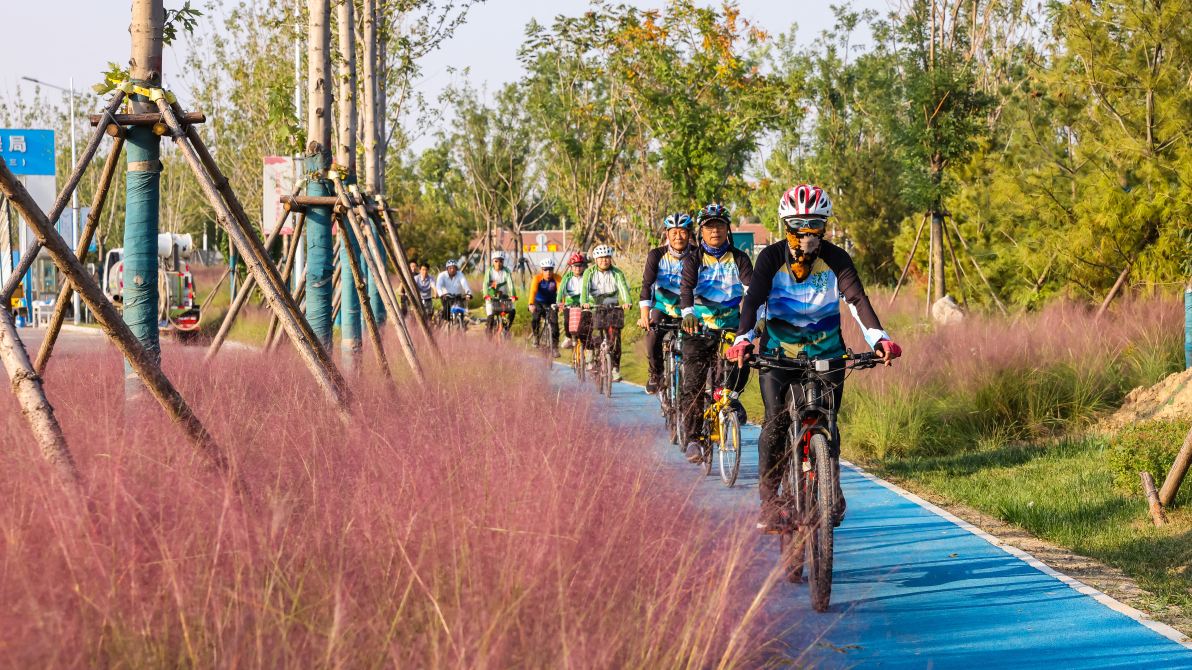 骑行体验路段属于孝妇河文化休闲生态观光带的一部分,目前观光带由博山至周村的沿河主道路基本贯通,“外通内畅”的滨水慢行网络建设正在加快推进。两岸通过打造粉黛草海、多彩菊田、湿地花谷、净化林带等植物景观,形成了四季有绿、三季有彩的景观风貌,全域公园城市的一条绿脉纵穿南北,百里画廊线条初显。