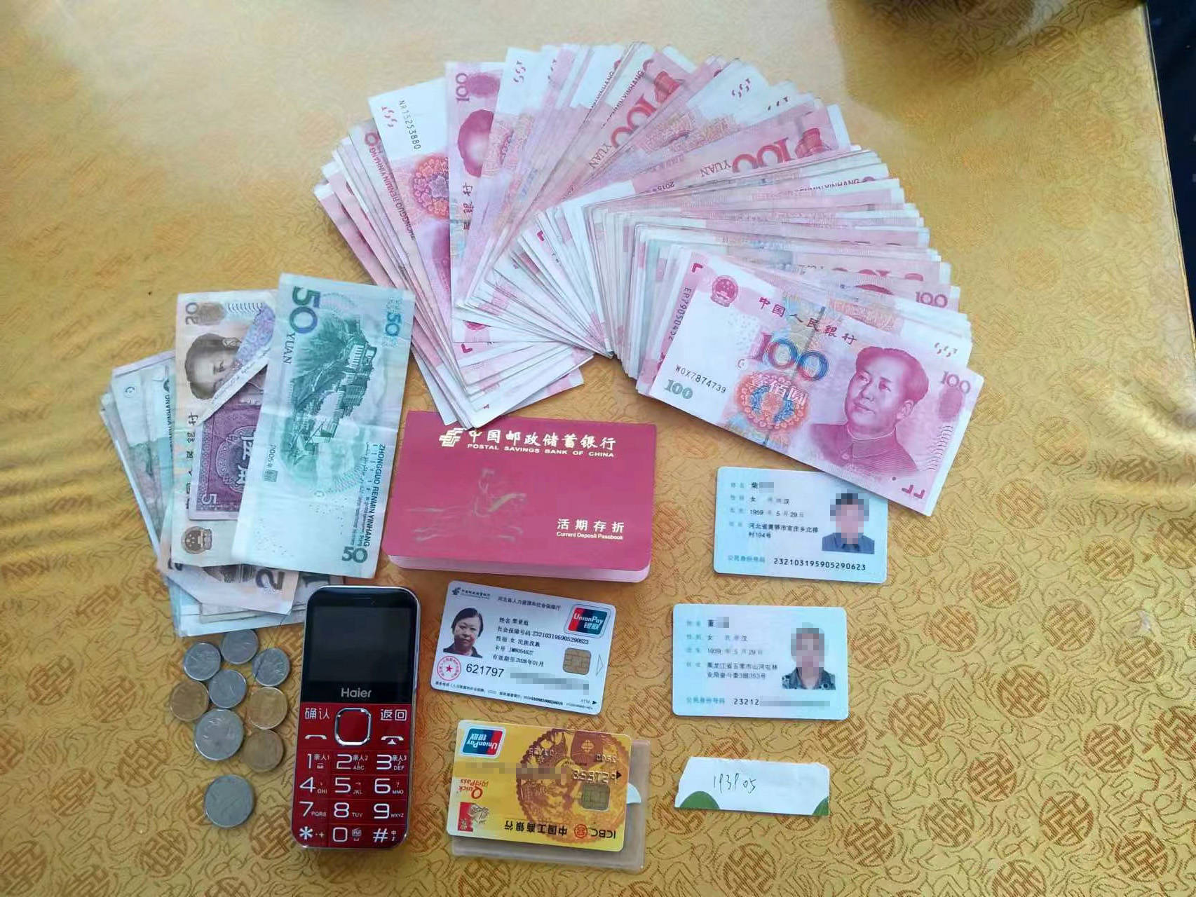 2023年1月7日,在青岛开往成都东的G318列车上,列车长刘岩巡视车厢过程中,在5车3B座行李架上发现了一个黑色单肩包,询问后无人认领,刘岩马上意识到这是旅客遗失在车上的,马上会同乘警一起清点了包内的物品:内有两个皮夹,现金1万7千余元、银行卡8张、退休证一张,手机一部,平板电脑一部,户口本一本,钥匙一串,充电器两个。“马上就要过年了,失主发现丢了东西肯定会很着急的。”看到这些东西,刘岩车长马上立即开始查找确认失主。最终,他通过列车终端机查询到到失主是在淄博站下的车。而在此时,失主尹老先生也正在焦急的找淄博站工作人员求助。