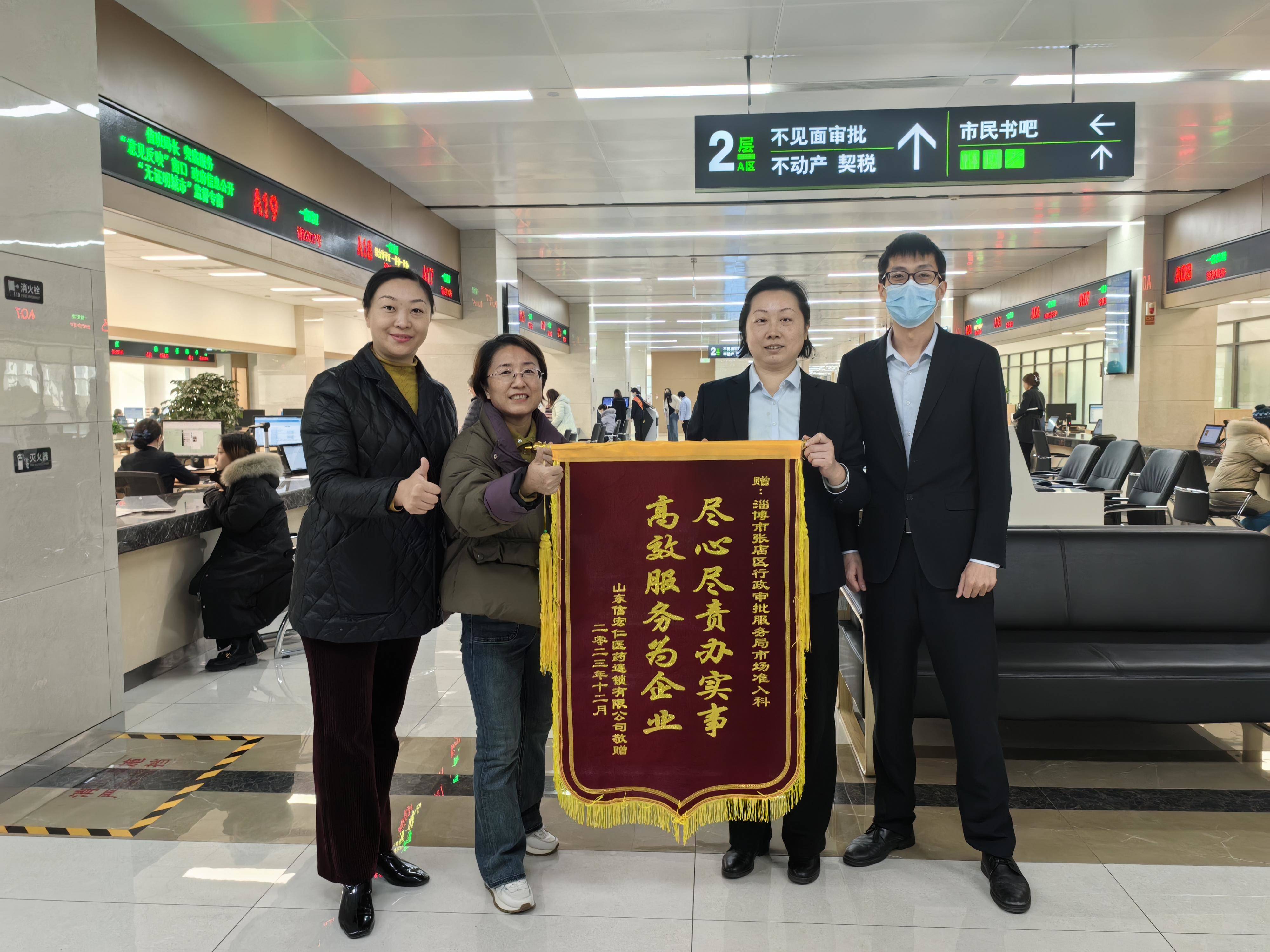营商环境只有更好,没有最好。行政审批效率更高、政务服务质量更优,市场主体获得感就更强、信心就更足。不久前,山东信宏仁医药连锁有限公司的王冉和郑燕为张店区行政审批服务局送来了锦旗,谈起现在的办事效率,两人不禁发起了感叹:“我们一次性就领取到了变更后的194家连锁门店的营业执照、药品经营许可证、食品经营许可证,还同步完成了全部门店的仅售预包装食品备案,为‘张店速度’点赞。”
