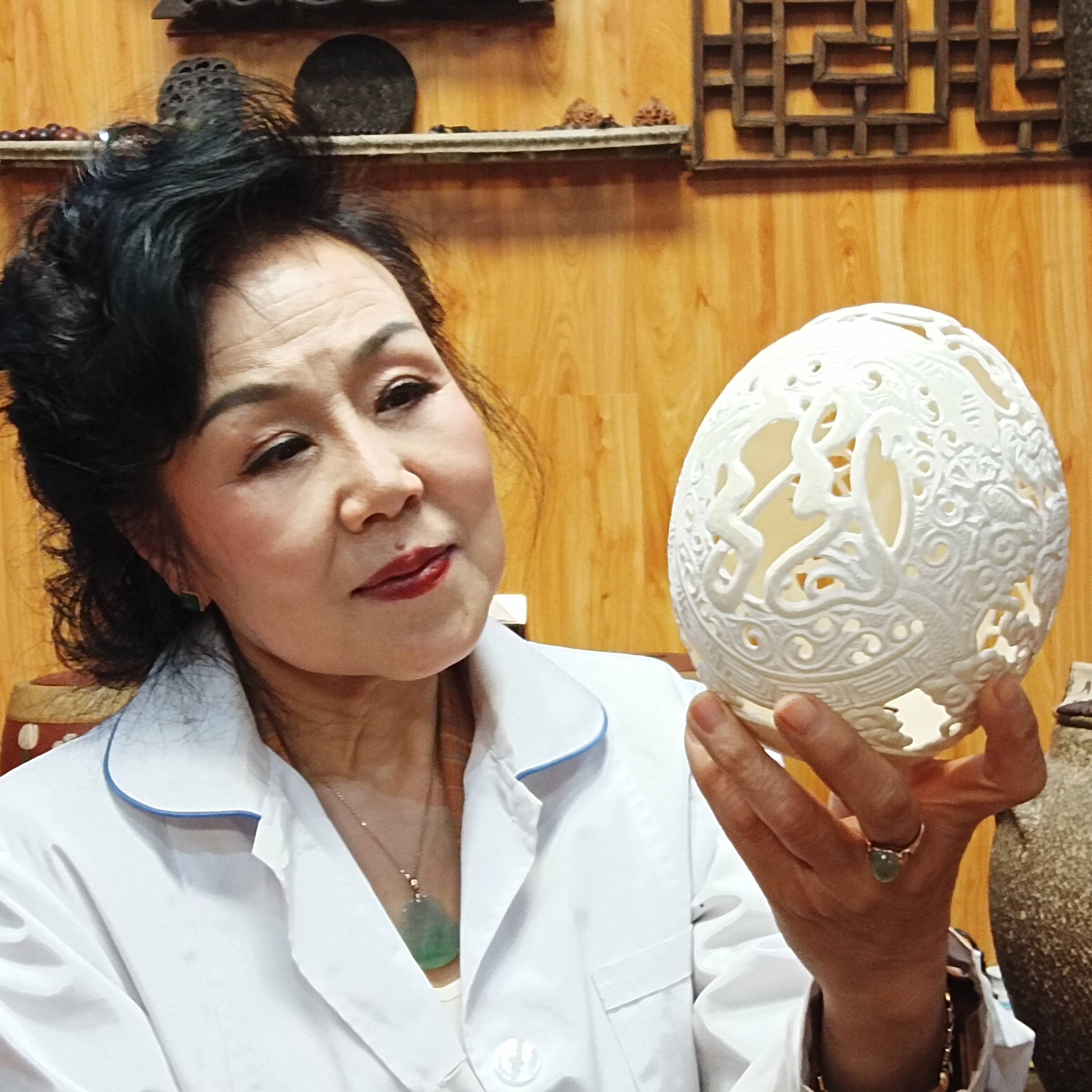 近日,淄博市淄川鸵鸟蛋雕艺术馆艺术馆馆长高茂美展示她创作的鸵鸟蛋雕艺术品。36年来,经高茂美设计的鸵鸟蛋雕艺术品种类上千个,涉及到花鸟虫鱼、风景山水、人物、民俗等。在创作的过程中,她融合各种元素,既不能做成单一呆板的“卡通画”,而是要充满灵动神韵的“创意品”,使每一件作品都各具特色,独具一格。(淄博市广播电视台记者张铭 通讯员闫盛霆)
