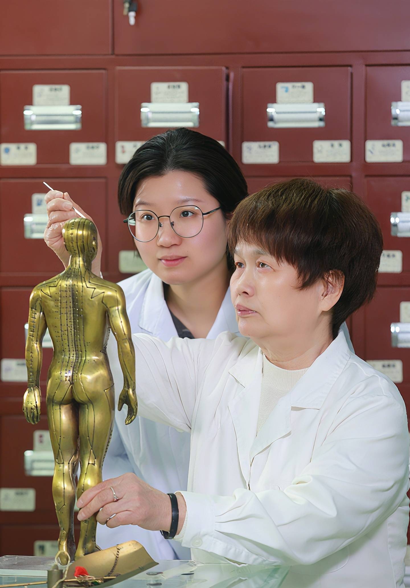 王金芳:我老爷爷也是一位医者,他在京城同仁堂从事针灸,我大哥回忆说,那时候请大夫都排着队,有轿子,也有小推车,我老爷爷出门先上小推车,给老百姓看。这个事,让我明白了,大医精诚,不是挂在嘴上的,而是行动。非遗传承,责任重大。传承,既要“传”下去,更要“承”起来。这门技艺比较难学,需要时间长,要靠老师口传心授,手把手地教,学生还得亲身操作、反复体悟。这不仅仅是教一个技术动作,比如,一个人肝脏有问题,你就要在咽喉这个“交通枢纽”上,精准找到肝经对应的那个特殊点,点刺之后,气血会顺着肝经的路线出来,你再配合针刺脚上的肝经穴位,如太冲、大敦,这就叫“内外贯通”。把整套思路、心法都完整地交给后人,才是真正的传承。