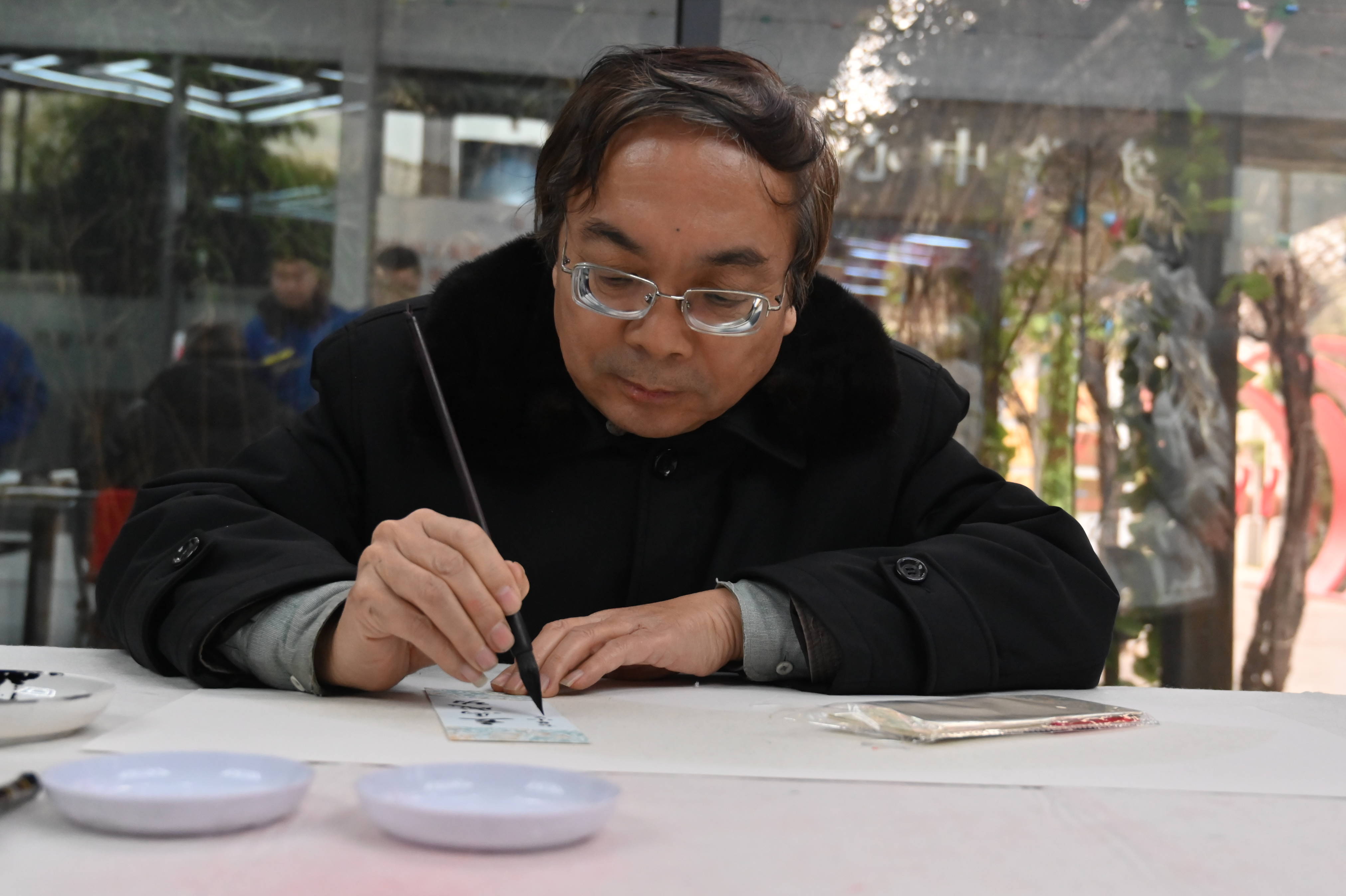 活动现场墨香四溢,书画家们铺纸蘸墨、笔走龙蛇,一幅幅寓意吉祥的福字和春联跃然纸上。周村区文联机关主任宋军,国家一级美术师、周村区书画家协会会长、国礼证书获得者吕长军,中国艺术学会副秘书长、中国华夏复兴书画院院长吕蓬军,周村美协秘书长樊文智,周村城北中学副校长黄传祥,周村区北郊镇后草村党支部书记、村委会主任朱秀军等一行深入企业一线,与职工互动交流,将饱含深情的墨宝送到大家手中。