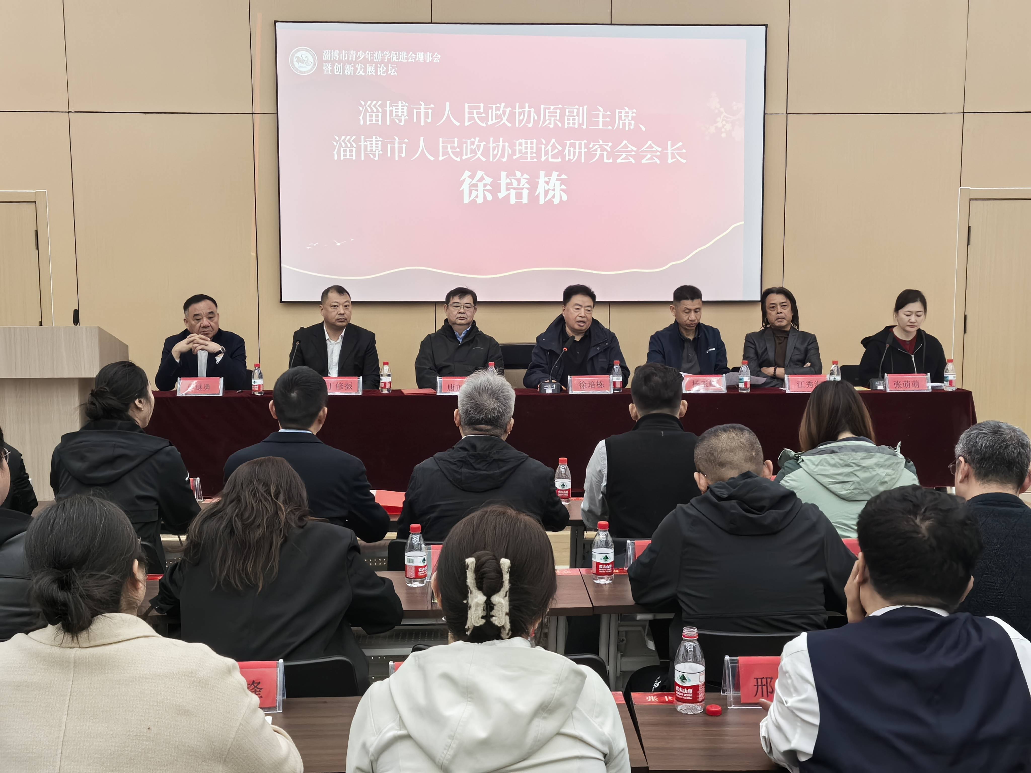 3月22日,淄博市青少年游学促进会二届一次理事会暨文旅行业创新发展论坛在淄博高新区军屯村举行。淄博市政协原副主席、淄博市人民政协理论研究会会长徐培栋,山东省精品旅游促进会副秘书长杨玉峰等相关领导,以及促进会专家、顾问、会长、副会长、监事、全体理事、秘书长等参加会议。