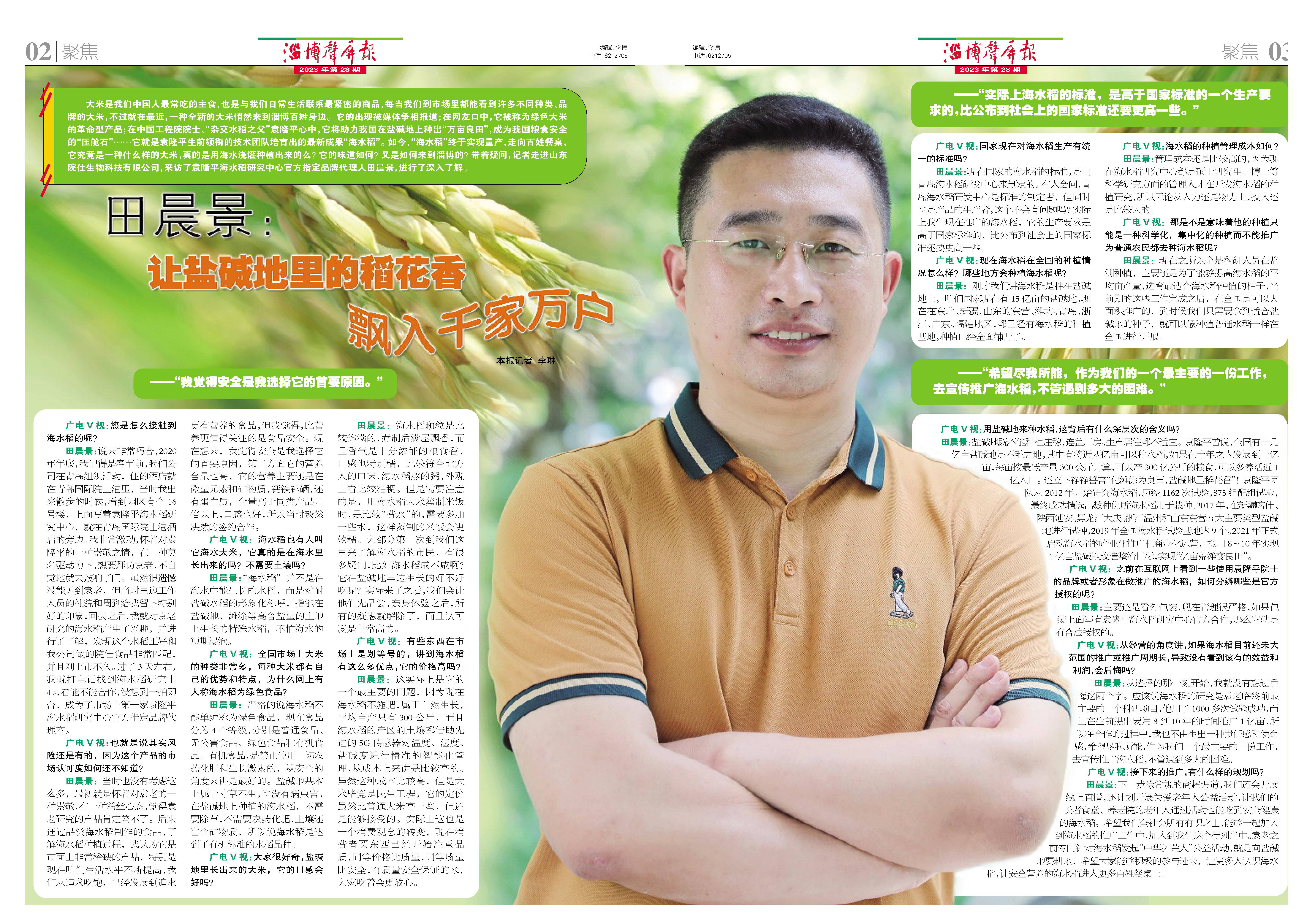 田晨景:让盐碱地里的稻花香飘入千家万户