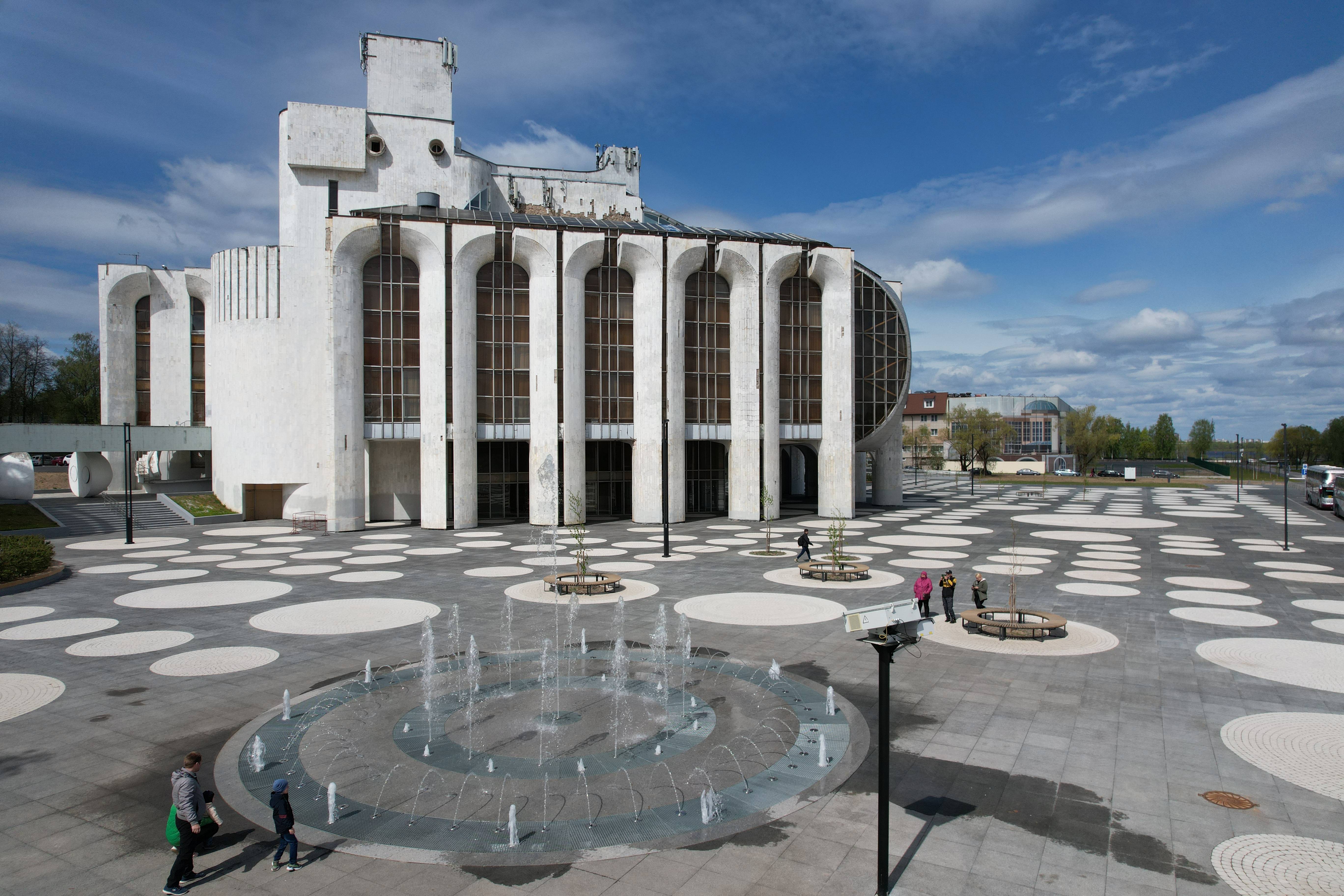 河岸公园中央是大诺夫哥罗德戏剧院,始建于1987年,是苏联现代主义建筑的典范。