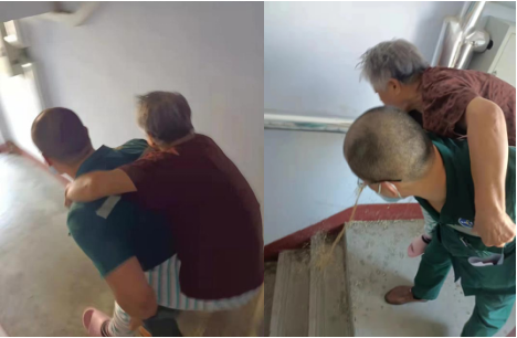 原来,8月31日下午,北大医疗鲁中医院急诊科接到了120指挥中心的派车单,去遄台北接诊一位腿脚活动不灵、言语不清的患者。当救护车快速到达目的地后,不想情况比我们想的还要糟糕一些。原来,老人家居住在五楼,子女都不在本地,家中只有两位老人。出诊的医护只能自己搬抬病人。翟超医生给老人迅速查完体以后,发现老人的病情不能耽误,得赶紧接回医院进一步救治。于是,翟大夫跟老人说:“楼梯太窄,担架不好抬,您不要担心,我背您下去,您一定要抓好我,不要松手”。说完翟大夫立即弯腰在护士的帮助下将老人背在后背上,小心翼翼地从五楼往下走。不曾想,走到三楼的时候,老人“哗”地一声吐了翟医生一身,并伴随出现小便失禁,翟大夫身上的衣服湿透了,还有一股难闻的气味,然而翟医生却毫不在意,仍然坚持将老人背到救护车上,迅速赶往医院进行救治并安排住院治疗。