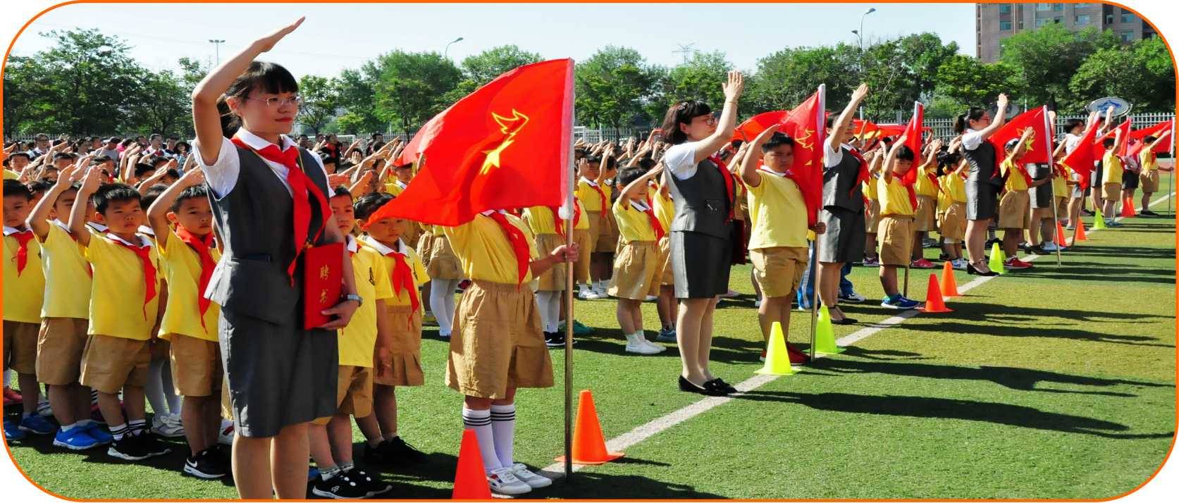 自建校起,新生入学第一周都要进行“起始教育”学习,通过学习《在校一日常规》、“文明小榜样”评选等活动,孩子一入学就感受到文明的力量,留下努力做文明小学生的第一印象;每天早上8:00,演讲、个人展示、课本剧表演等,悉数在红领巾展示台有序登场,队员们自主报名,队干部自主管理,上学的队员自主观看,队员们在展示与观看中,实现了自我教育、自我服务和自我超越……