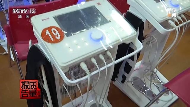 上海市市场监督管理局执法总队十四支队副支队长陈欢欢:上海有四家项美免费体验门店,这四家门店的销售模式几乎都是一样的,打着免费体验的旗号,邀请中老年女性消费者到店里来免费体验,每个店里面都有所谓的讲师,给消费者介绍,说他们这款机器对糖尿病、高血压,或者什么结节类似的这些疾病,具有一些诊疗的效果。