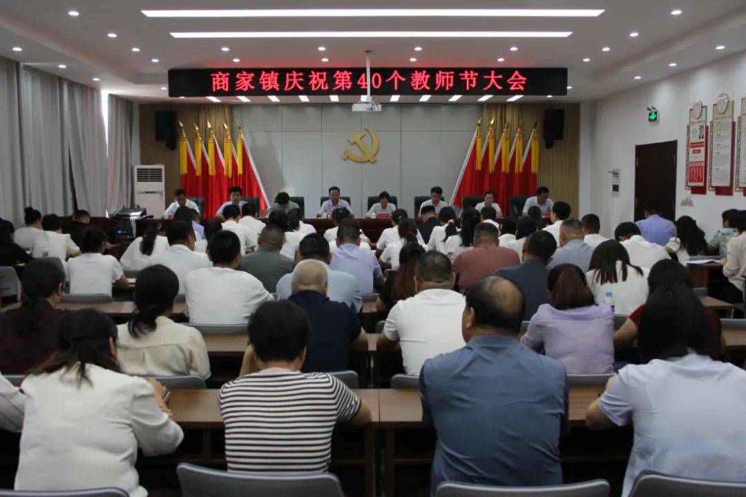 9月9日下午,文昌湖区商家镇召开庆祝第40个教师节大会,向全镇广大教师和教育工作者致以诚挚的祝福和崇高的敬意。镇党委书记贾万刚出席会议并讲话,镇党委副书记、镇长梁雁主持会议。区地方事业局党组成员、副局长张鹤鸣,镇领导班子成员、各部门负责同志,各学校、村、企业相关负责同志以及部分区镇人大代表、先进单位和先进个人代表参加会议。