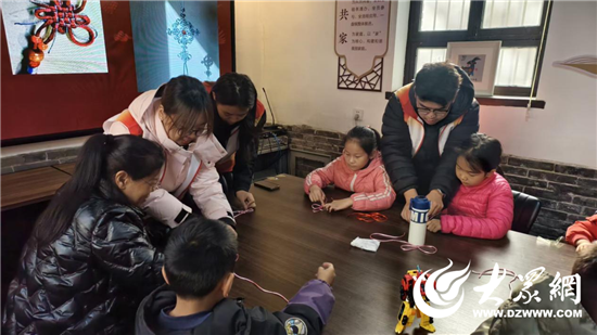 手工课堂则由中国结编织体验展开。来自山东农业工程学院的大学生志愿者细致讲解中国结的历史渊源、编织技巧与吉祥寓意,并耐心指导每个家庭动手操作。孩子们在家长的协助下绕线、打结,一个个色彩鲜艳、造型精巧的中国结渐渐成形。活动现场笑声不断,亲情在协作中悄然升温。