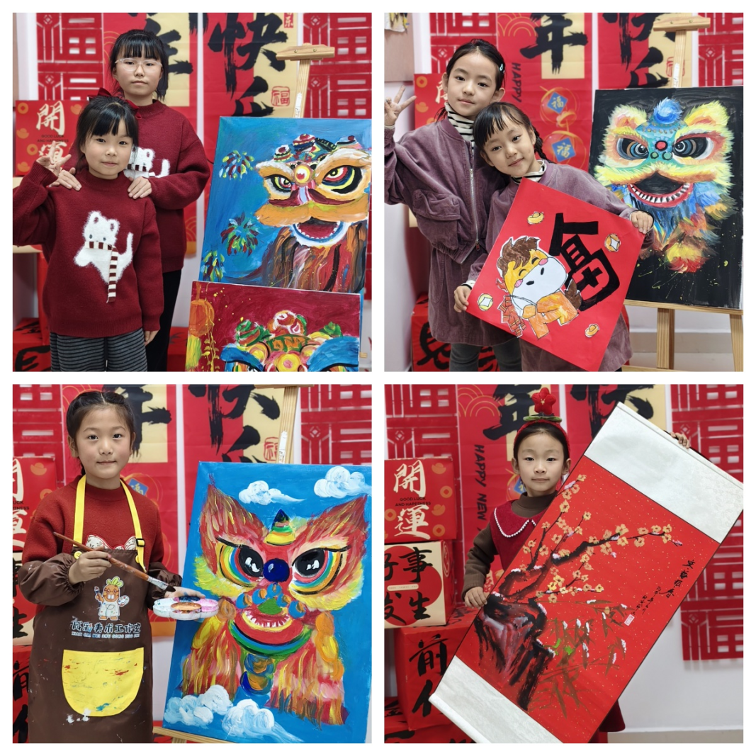活动中,老师们穿梭在人群中,主动递上工具、调配颜料,耐心协助每一位孩子完成创作,用细致周到的服务为活动保驾护航。孩子们在动手实践中深入了解醒狮文化、福字寓意与梅花内涵,在沉浸式体验中传承中华文脉。活动尾声,大家纷纷展示自己的作品,相互合影留念,定格这份温馨美好的新春记忆,欢声笑语萦绕现场。
