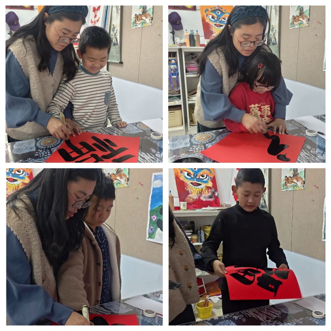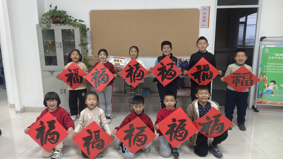 福字书写活动同样人气高涨,墨香与年味在现场交织弥漫,成为冬日里最暖心的风景。在老师的示范引导下,孩子们握笔、蘸墨、起笔、收锋,动作虽略显稚嫩,笔法却各有韵味。大家围坐在一起,相互交流笔法技巧、分享书写心得,偶尔传来阵阵赞叹与欢笑,邻里情谊在笔墨流转间悄然升温。一张张红彤彤的福字新鲜“出炉”,每一笔都饱含对新年的期许,承载着平安喜乐、吉祥顺遂的美好祝福。孩子们小心翼翼地捧着自己的作品,脸上洋溢着满满的成就感与幸福感,现场暖意融融、喜乐祥和。
