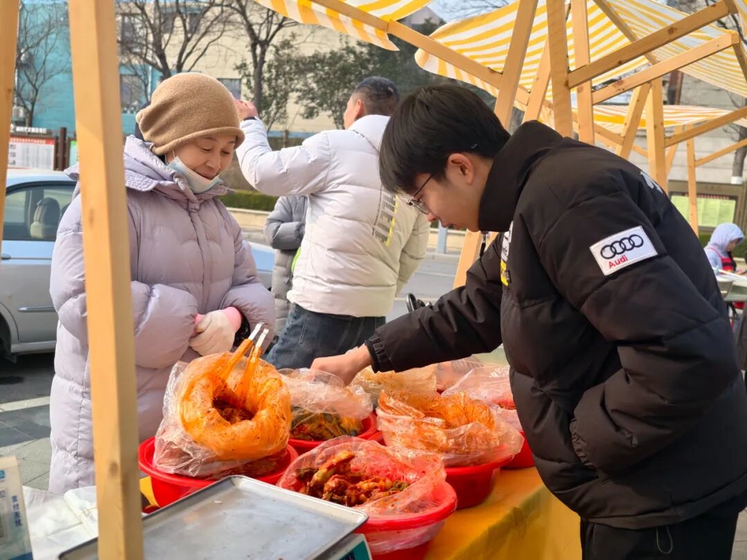 活动现场,紫悦城社区广场化身“年货天堂”,知名商家齐聚一堂,带来丰富多样的年货选择:孙树强扒鸡酱蹄的摊位前香气四溢,酱香浓郁的卤味吸引居民驻足选购,不少人直呼“这就是过年的味道!”蒙牛奶业推出节日特惠装牛奶,满足家庭健康需求,成为走亲访友的热门伴手礼。麦香源馒头蒸制的馒头香味十足,居民争相购买,为年夜饭餐桌添一份踏实与温暖……此外,金禧莱泡菜、杨国庆四喜丸子、水果蔬菜、爆米花等摊位也人气爆棚。