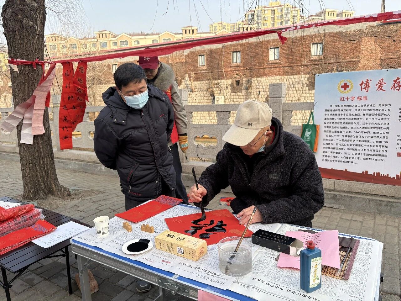 传统文化体验区里,趣味猜谜格外热闹。“一边说开始,一边说温暖”的谜面,引得居民们驻足推敲、互相探讨,有人灵光乍现猜出谜底,现场便响起由衷的喝彩。一旁的书法桌前墨香四溢,社区书法爱好者现场挥毫,一笔一划沉稳有力,一幅幅寓意吉祥的春联顺势而成。猜中谜语的居民,都能免费领取一副手写春联,红纸墨字承载着新春祝福,让大家满心欢喜。