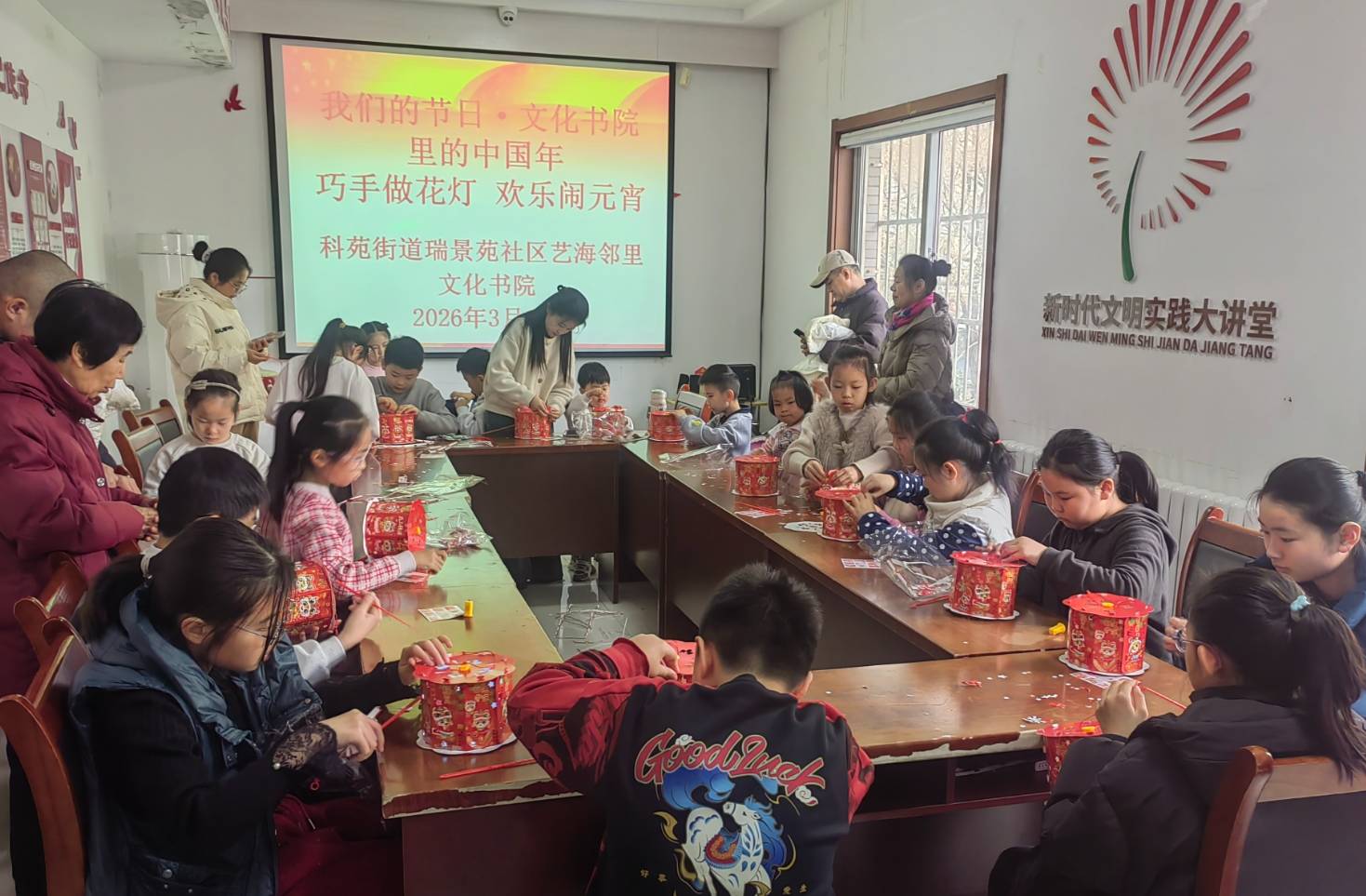 为弘扬中华优秀传统文化,营造喜庆祥和的元宵佳节氛围,让社区居民在民俗体验中感受传统年味,3月3日,科苑街道瑞景苑社区开展“我们的节日·文化书院里的中国年”主题活动,邀请辖区亲子家庭欢聚一堂,动手制作花灯、聆听民俗故事,共赴一场温馨的节日之约。