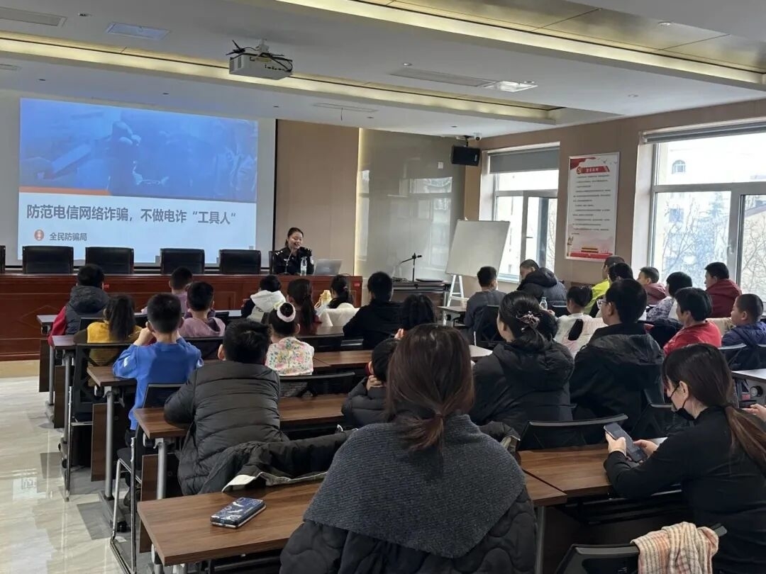 民警走进课堂,结合中小学生高发诈骗类型,用通俗话语传授反诈技巧,讲解受骗后求助流程,传递“邻里互助、守望相助”的里仁理念,鼓励同学们不仅要自身防骗,更要提醒身边人,在互动交流中筑牢反诈防线,让仁心传递温暖、守护安全。