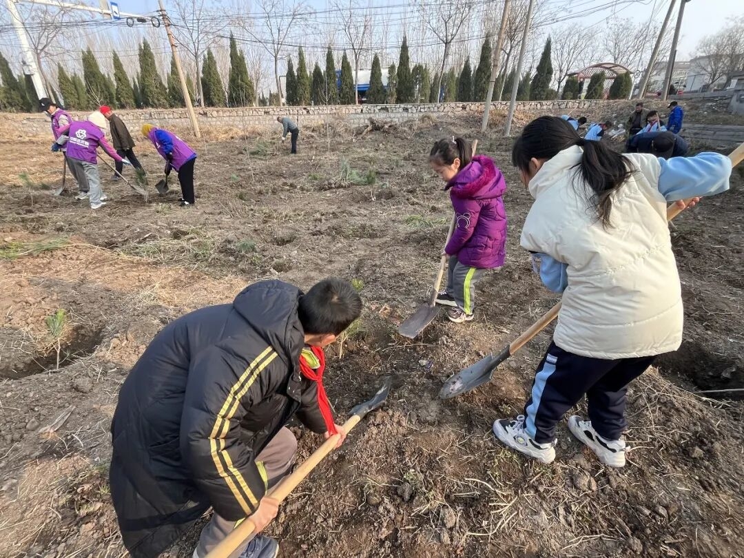 春回大地万象新,植树添绿正当时。为深入践行生态文明理念,厚植绿色家园意识,将书香文化与生态实践相融,3月12日,淄川区罗村镇南韩村贝丘书院组织“两委”成员、党员干部、村民志愿者开展植树节主题植树活动,以双手栽新绿,以初心护家园,让春意与书香一同扎根生长。