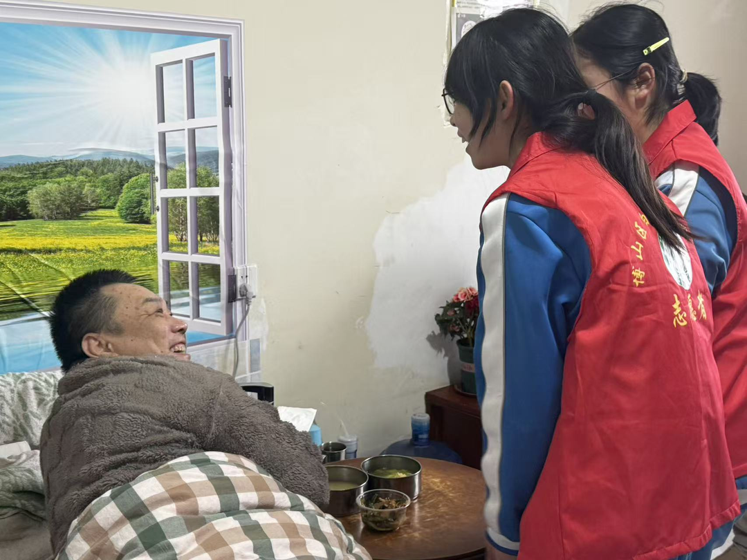 青少年是核心价值观的传承者,更是文明新风的生力军。白塔镇中心校的团员青少年志愿者满怀热情参与其中,为老年公寓注入满满生机。孩子们围坐在老人身边,倾听往昔故事、分享校园趣事,用欢声笑语驱散老人孤寂;主动拿起清洁工具整理床铺、清扫地面,协助工作人员打饭分餐,以稚嫩的肩膀扛起敬老责任,用纯真行动诠释“友善”真谛。这场“小手牵大手”的暖心互动,既让老人收获亲情般陪伴,更让青少年在实践中体悟传统美德、涵养文明素养,将尊老、敬老、爱老、助老的品质内化于心、外化于行,推动友善美德在代际传承中延续。